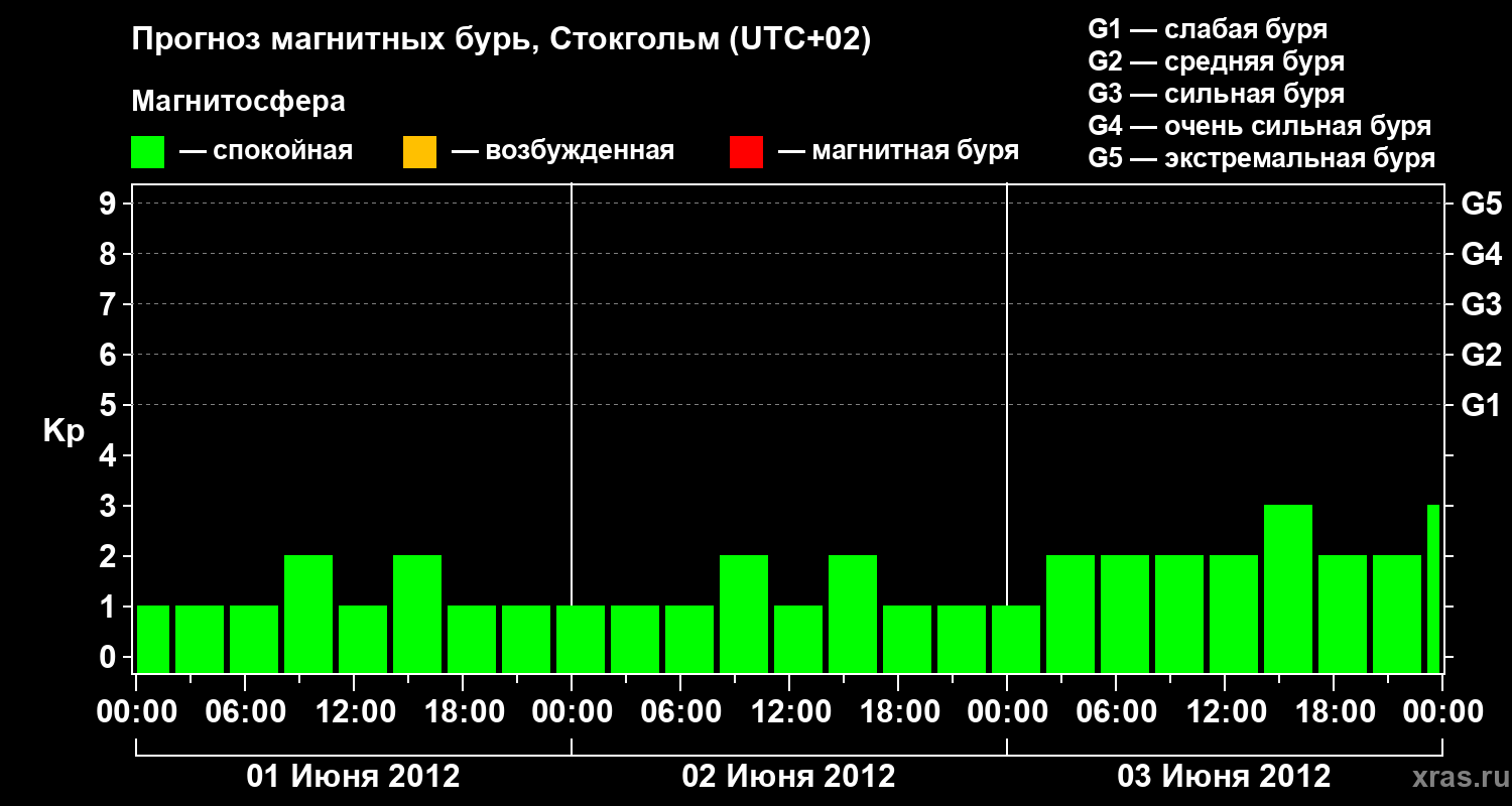Прогноз магнитных бурь в Стокгольме — 1 июня 2012 года