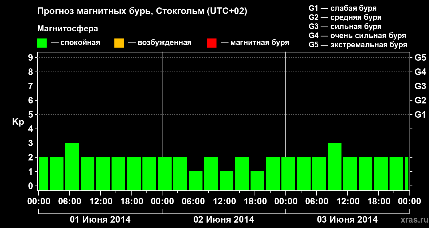 Прогноз магнитных бурь в Стокгольме — 1 июня 2014 года