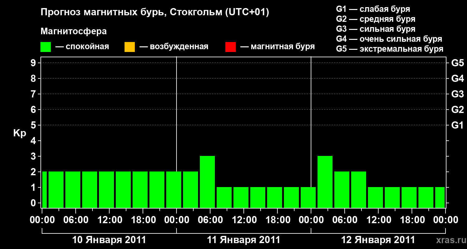 Прогноз магнитных бурь в Стокгольме — 10 января 2011 года