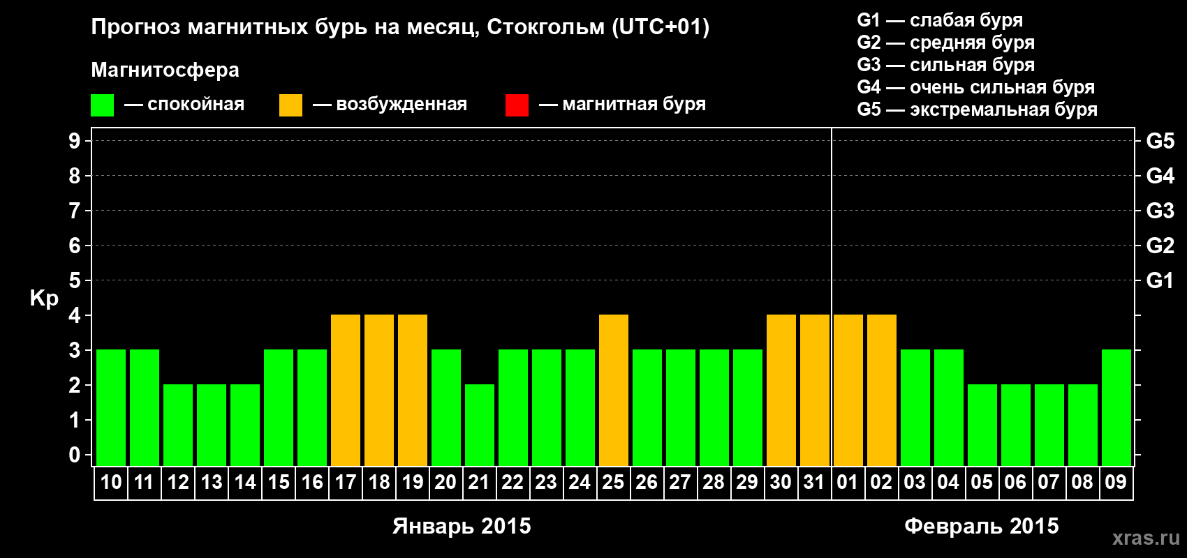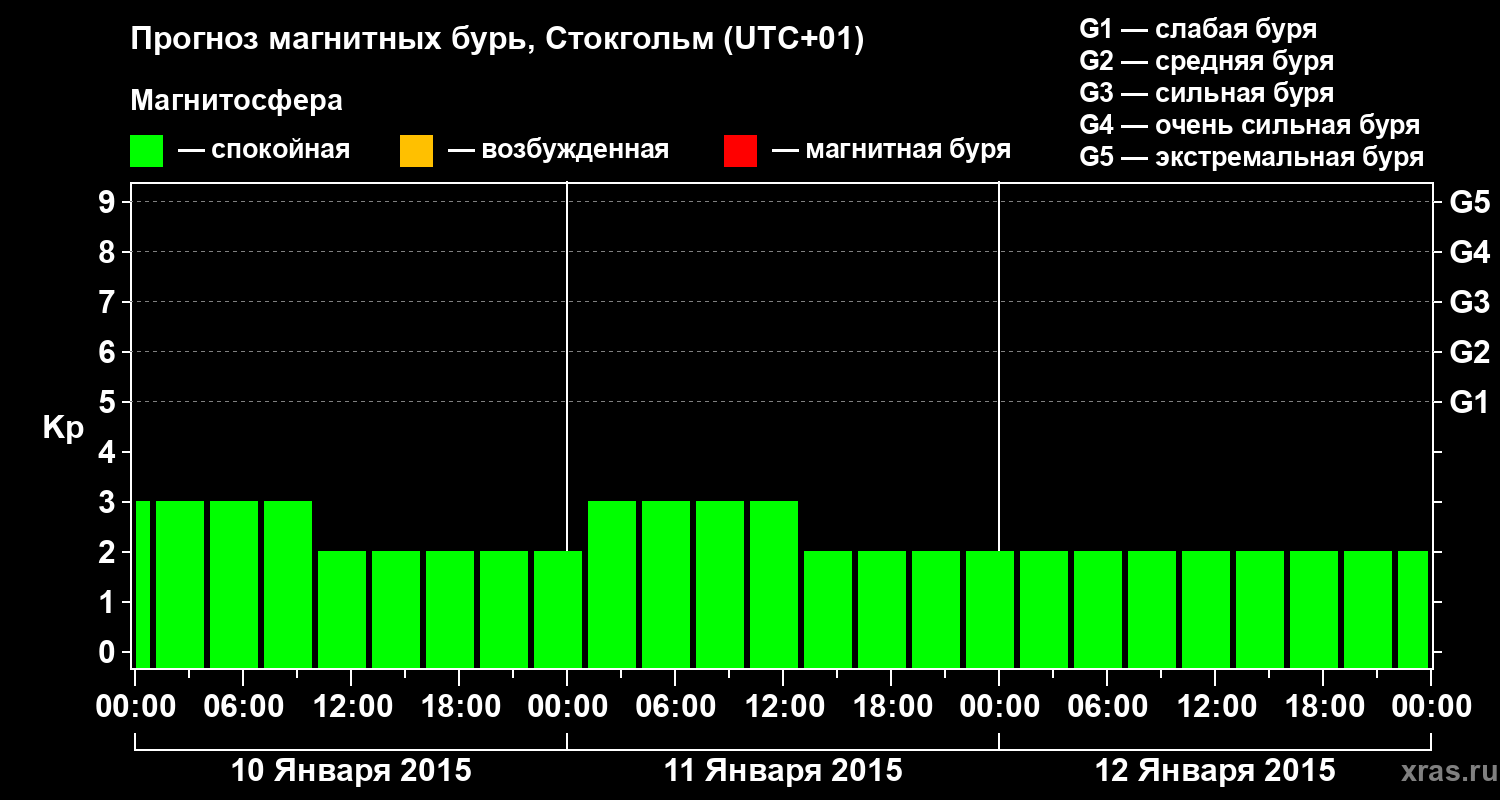 Прогноз магнитных бурь в Стокгольме — 10 января 2015 года