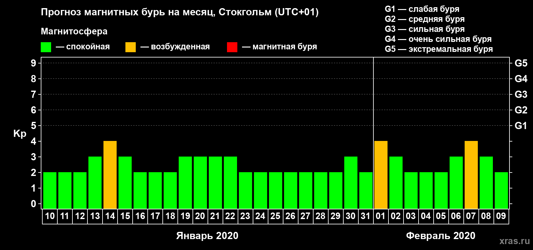 Прогноз магнитных бурь в Стокгольме — 10 января 2020 года