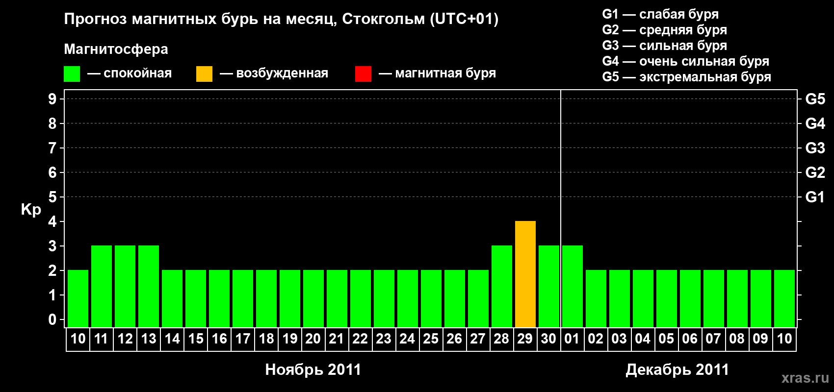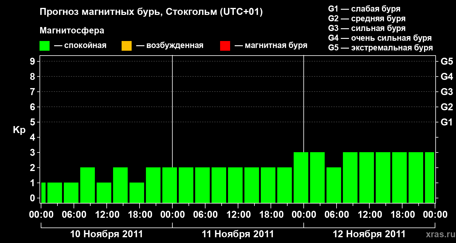 Прогноз магнитных бурь в Стокгольме — 10 ноября 2011 года