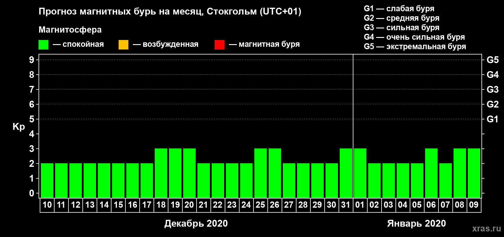 Прогноз магнитных бурь в Стокгольме — 10 декабря 2019 года