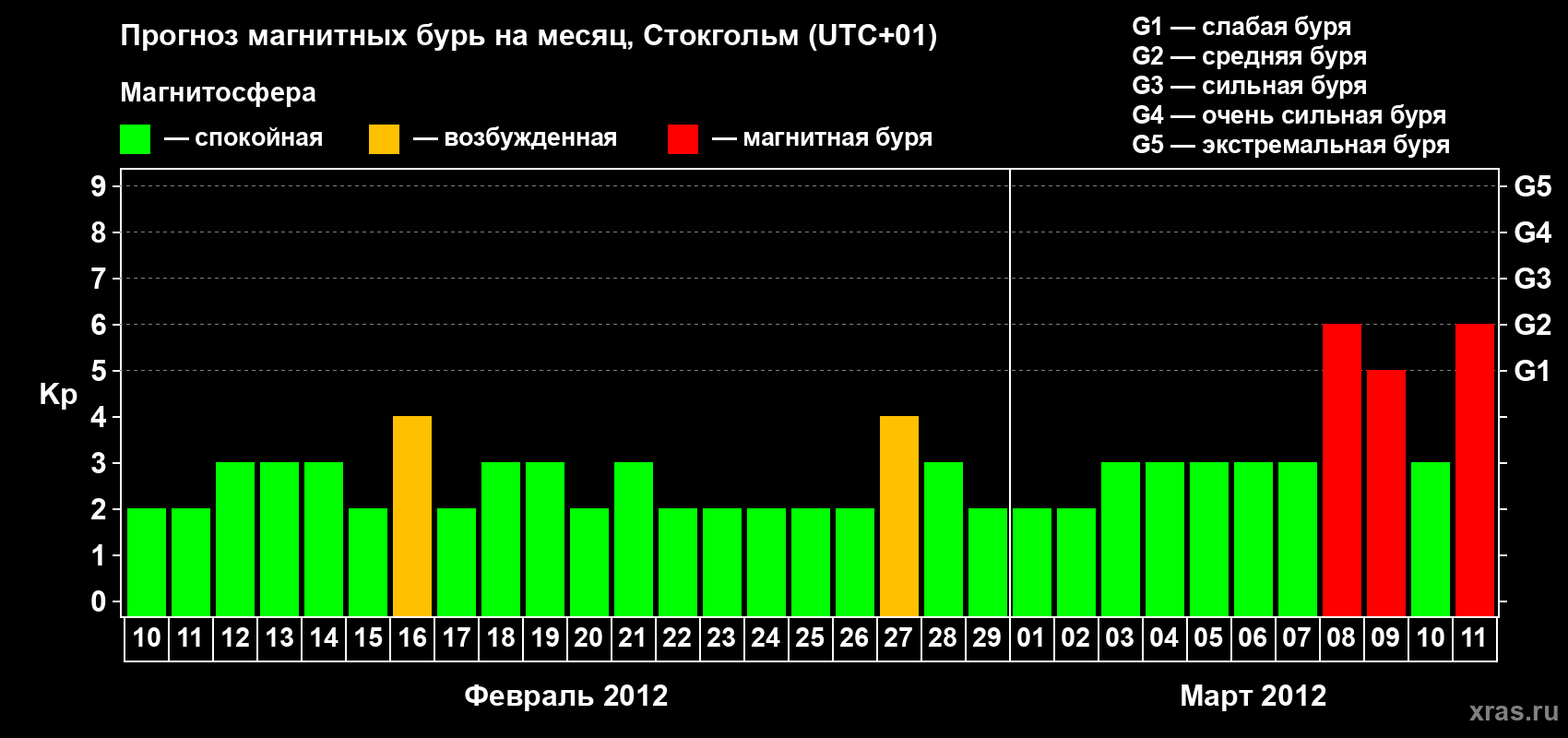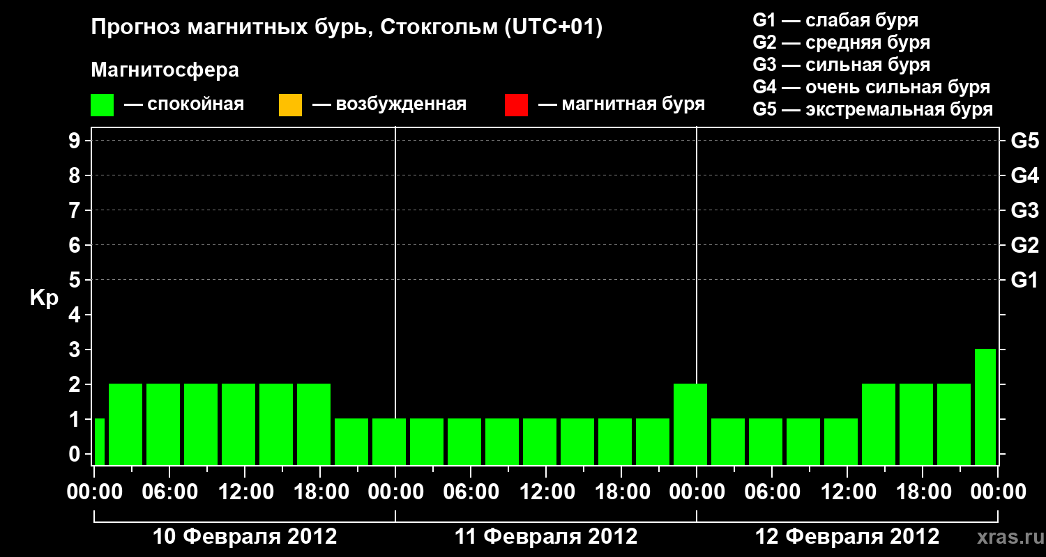 Прогноз магнитных бурь в Стокгольме — 10 февраля 2012 года