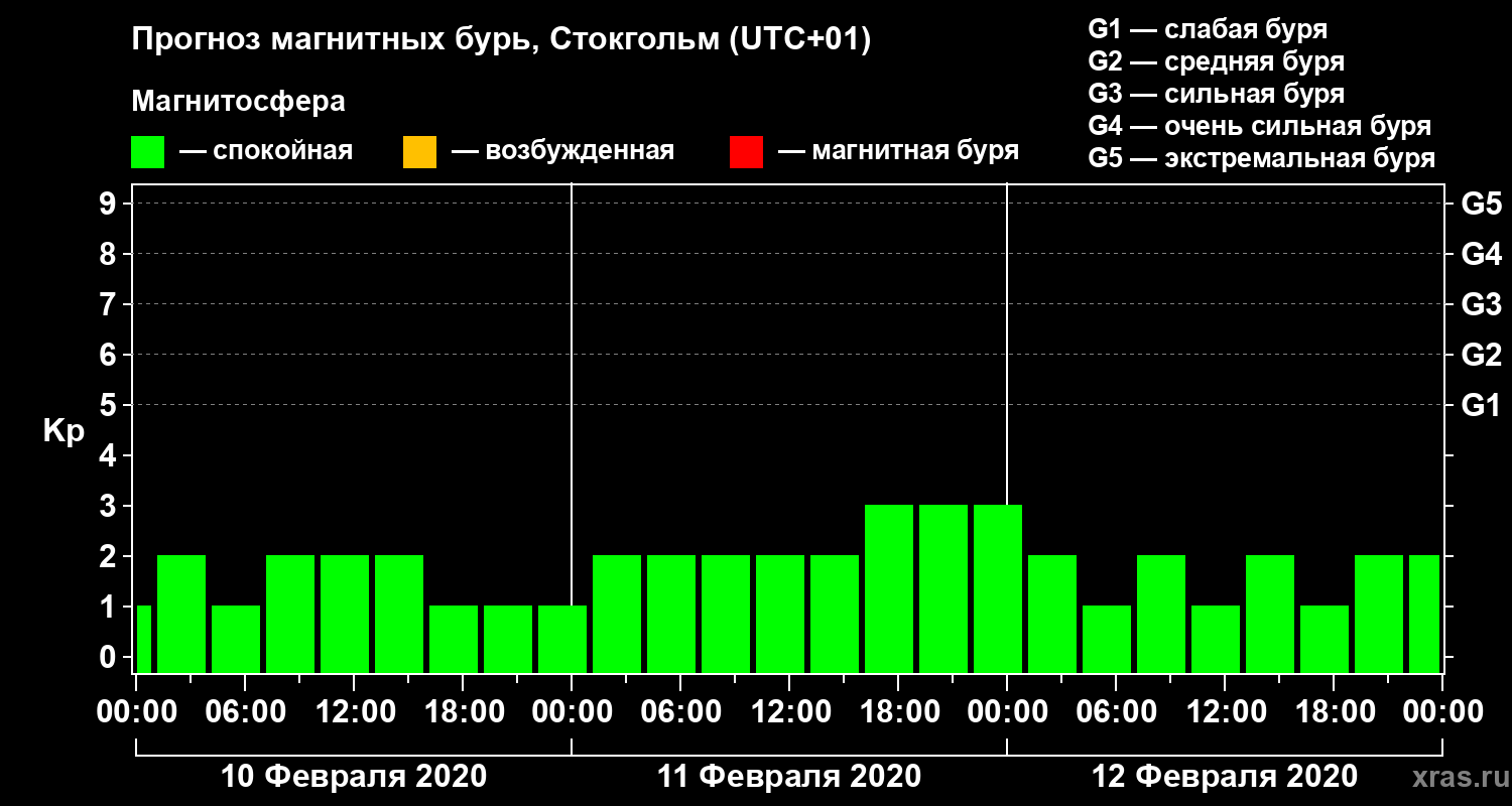 Прогноз магнитных бурь в Стокгольме — 10 февраля 2020 года