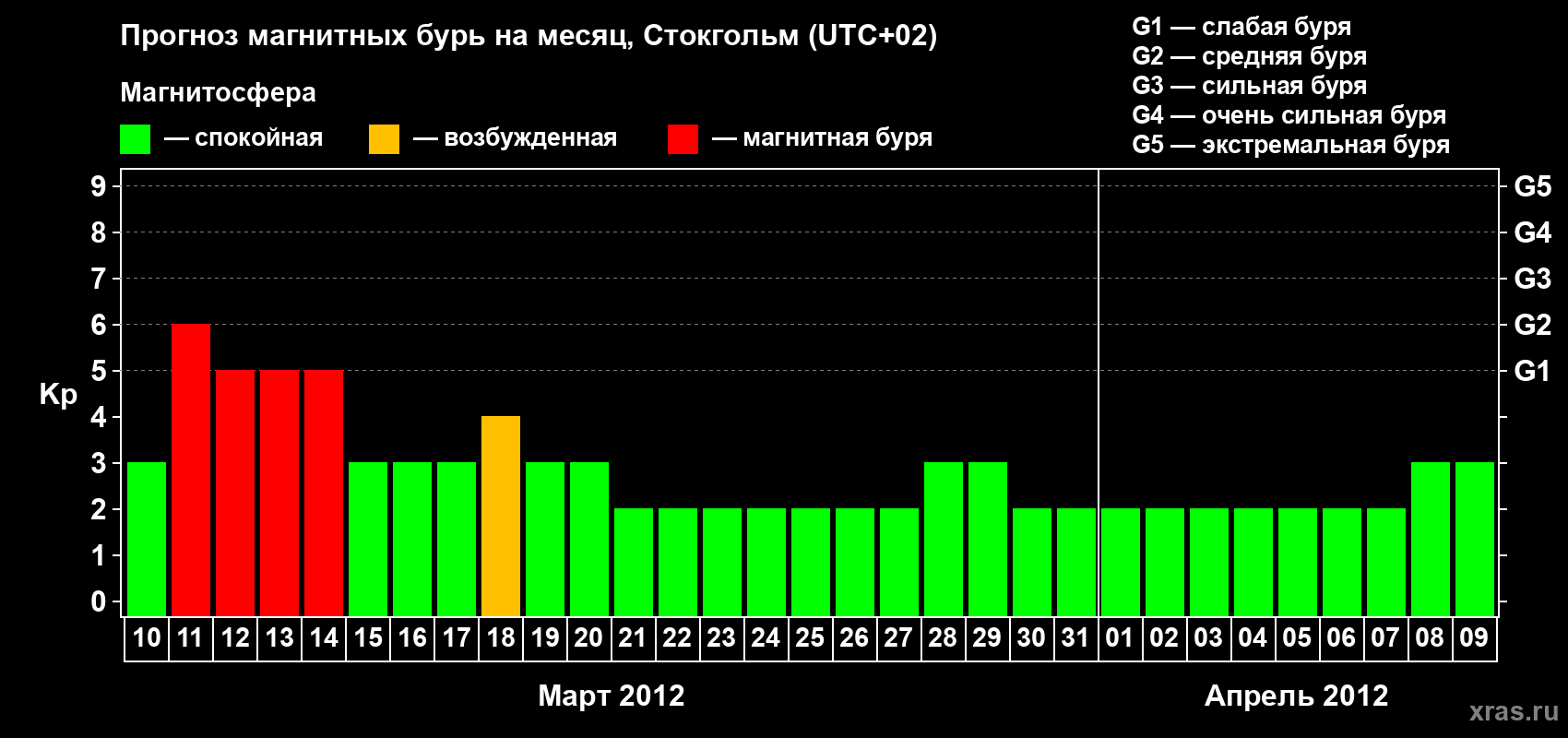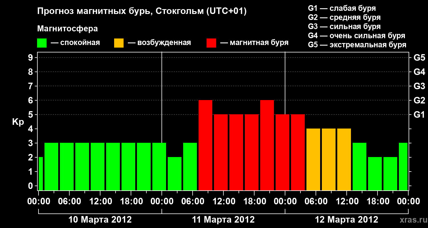 Прогноз магнитных бурь в Стокгольме — 10 марта 2012 года