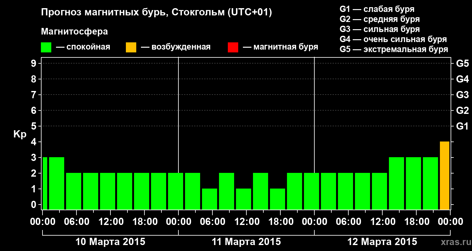 Прогноз магнитных бурь в Стокгольме — 10 марта 2015 года
