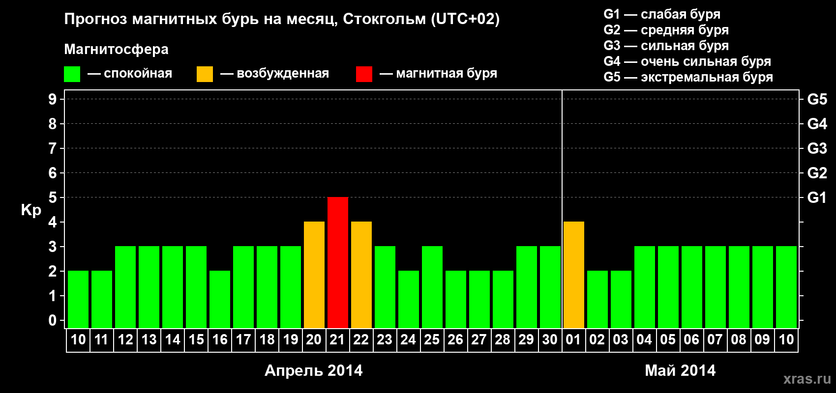 Прогноз магнитных бурь в Стокгольме — 10 апреля 2014 года