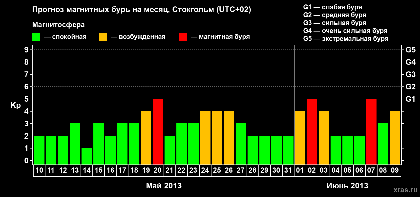 Прогноз магнитных бурь в Стокгольме — 10 мая 2013 года