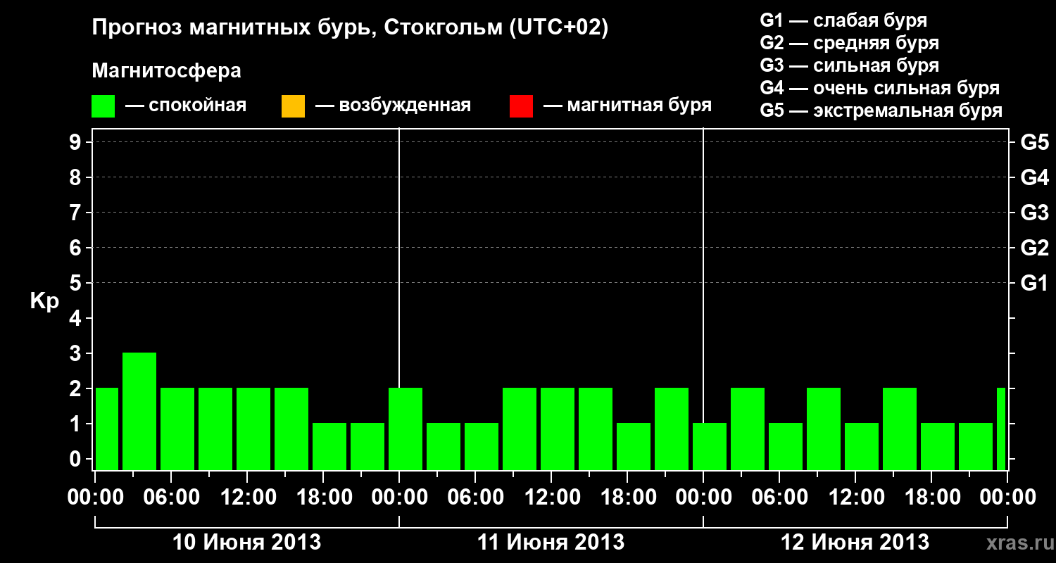 Прогноз магнитных бурь в Стокгольме — 10 июня 2013 года