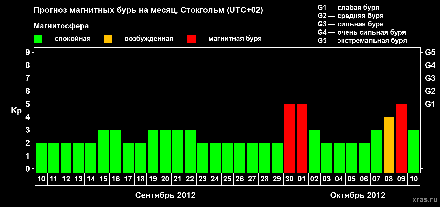 Прогноз магнитных бурь в Стокгольме — 10 сентября 2012 года