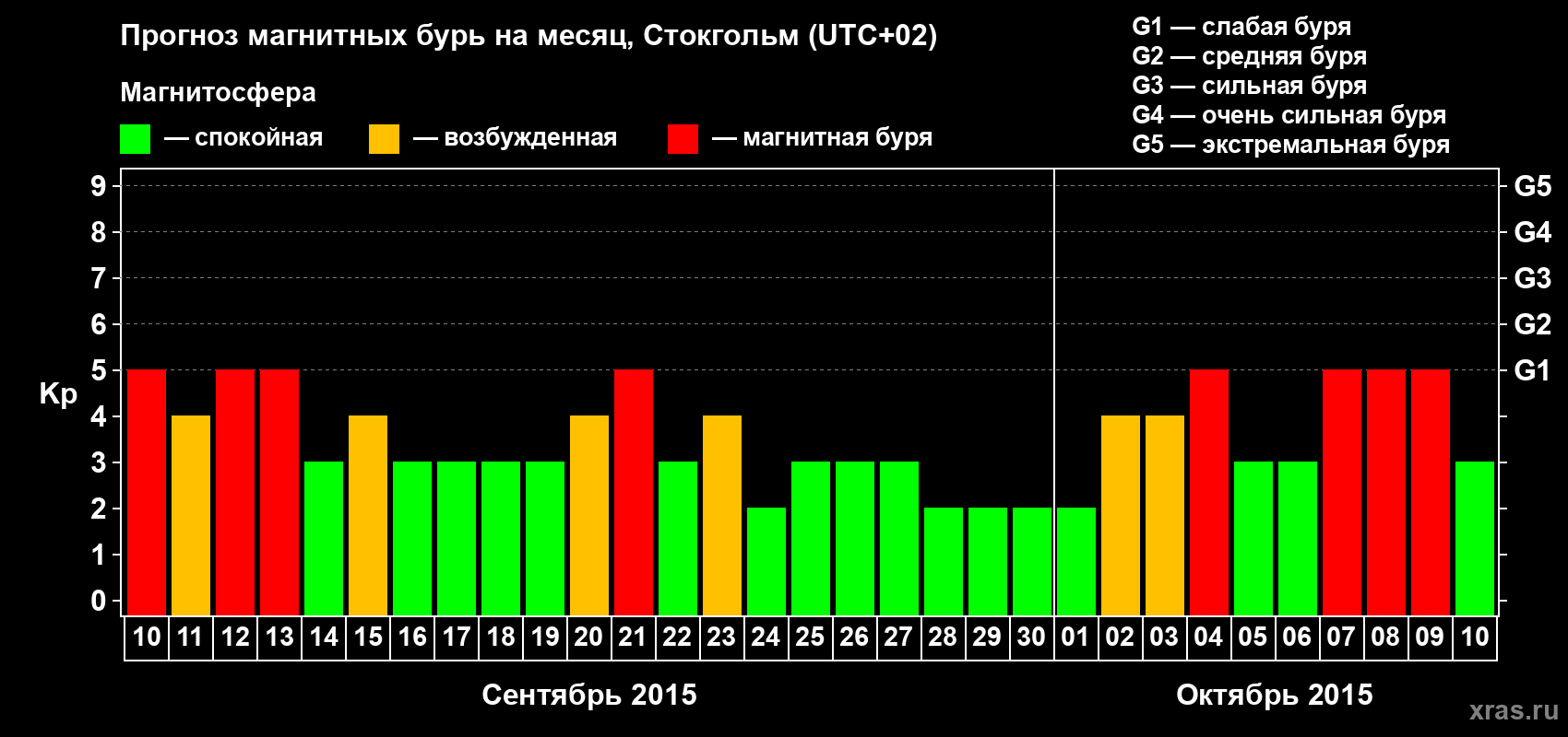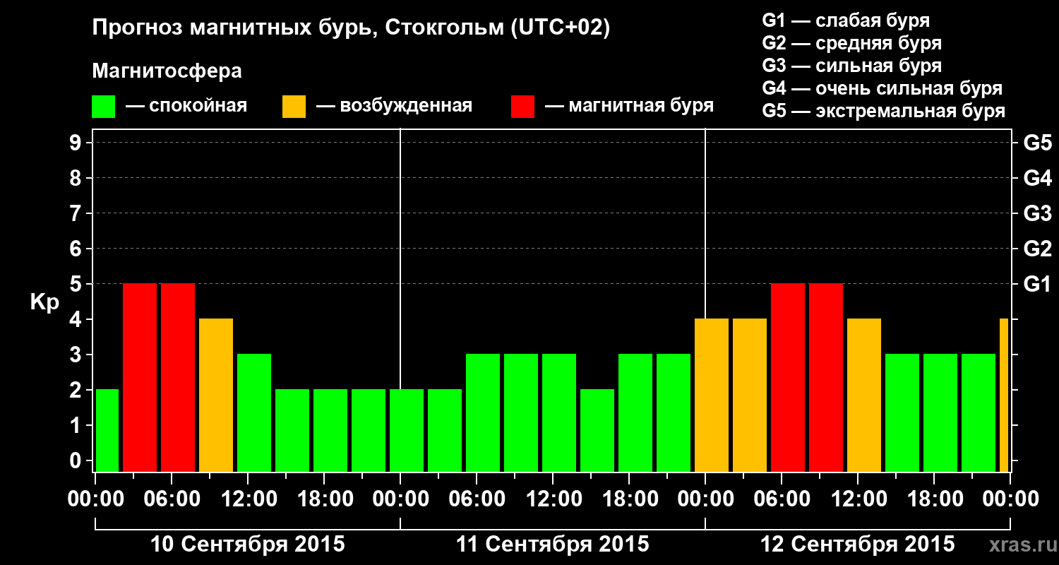 Прогноз магнитных бурь в Стокгольме — 10 сентября 2015 года
