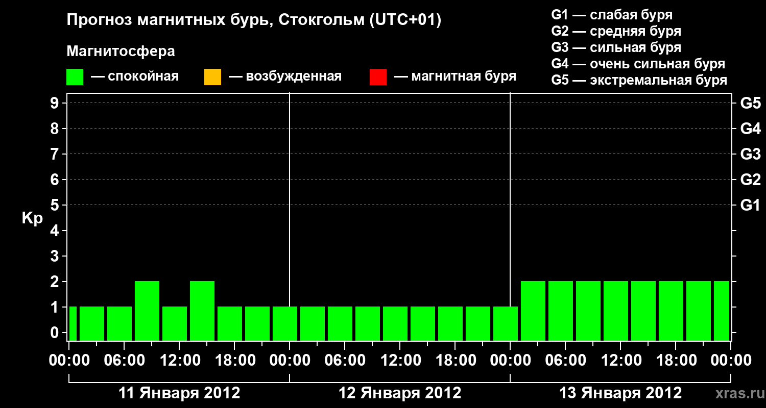 Прогноз магнитных бурь в Стокгольме — 11 января 2012 года