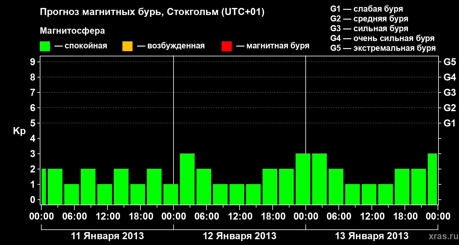 Прогноз магнитных бурь в Стокгольме — 11 января 2013 года