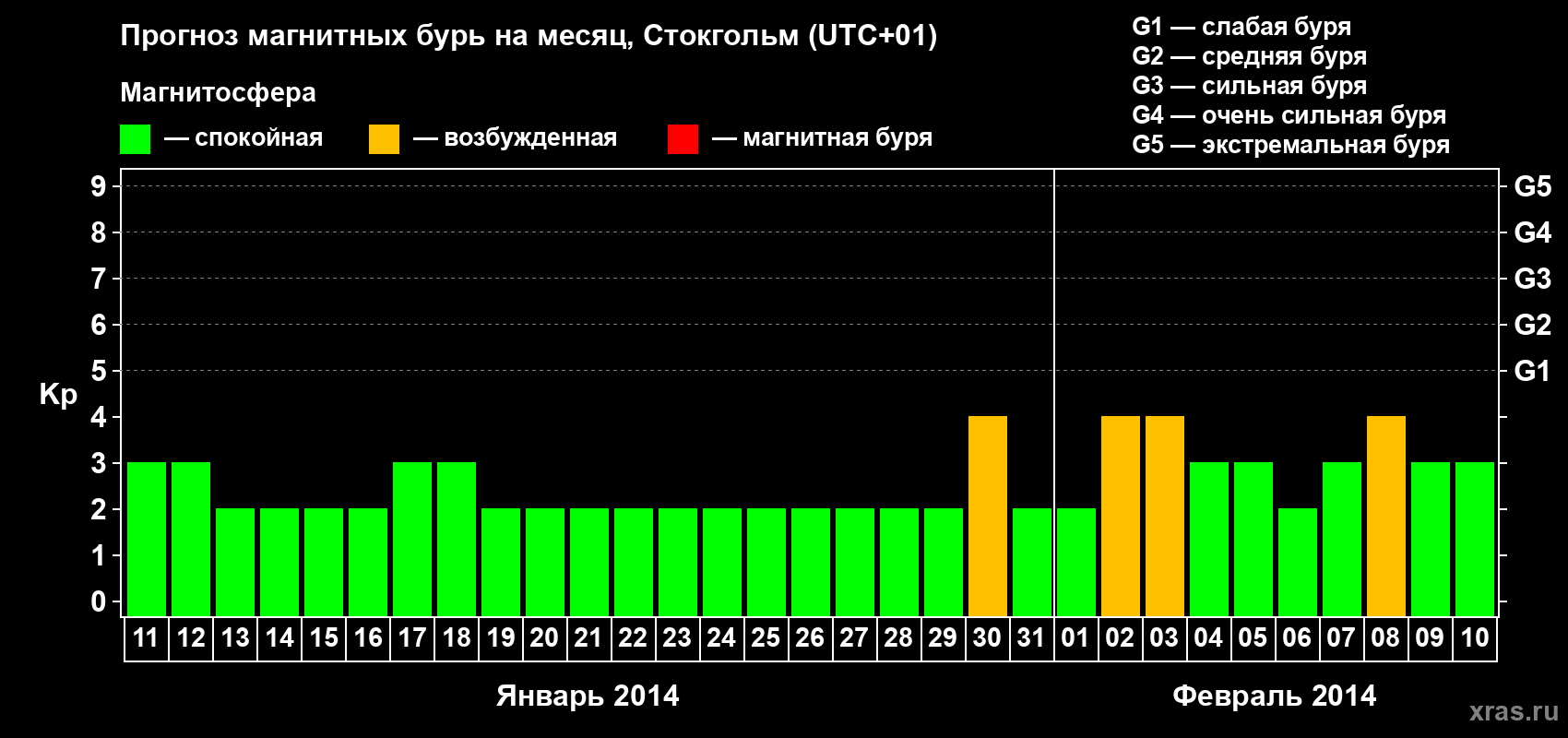 Прогноз магнитных бурь в Стокгольме — 11 января 2014 года