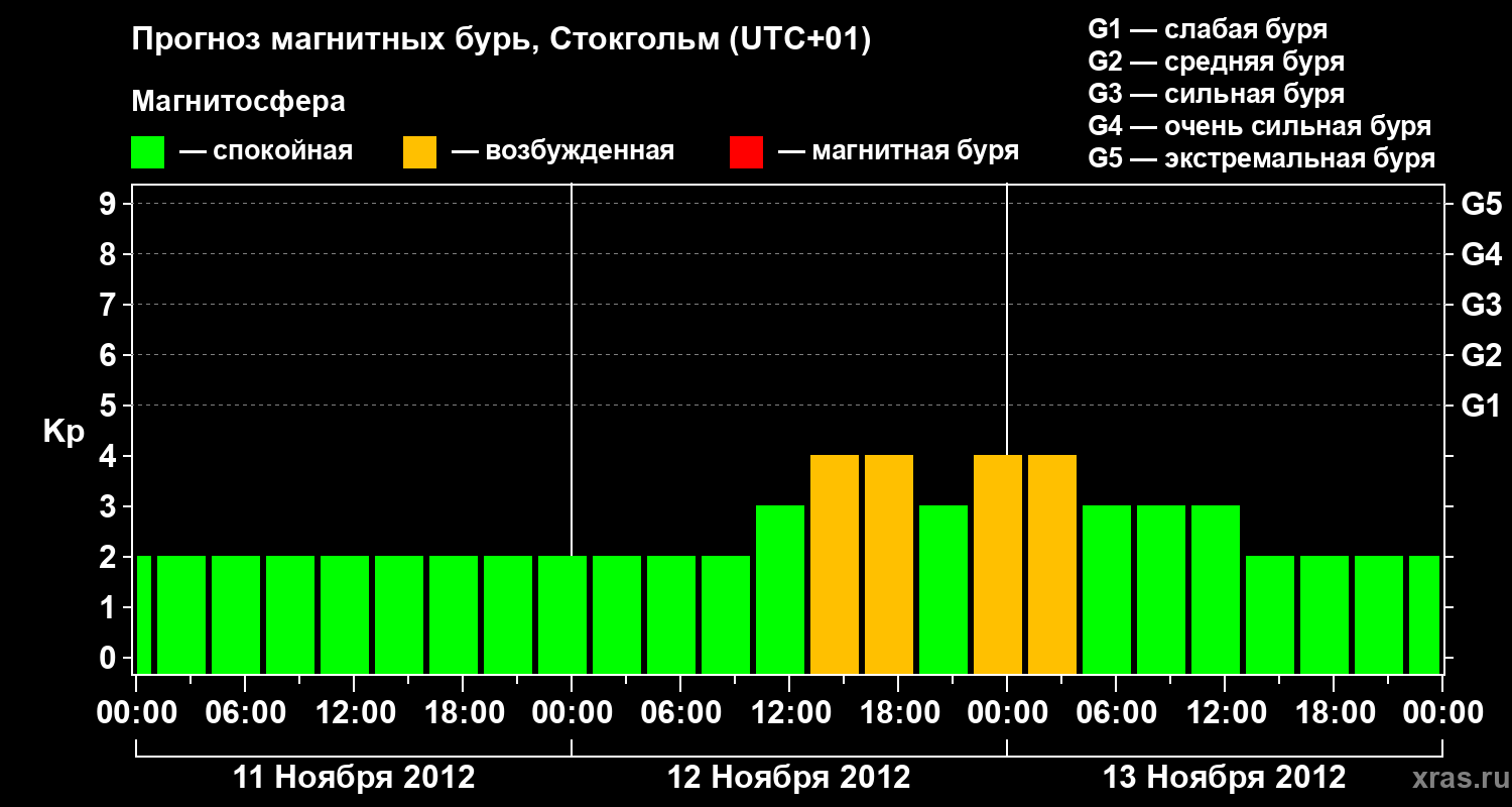 Прогноз магнитных бурь в Стокгольме — 11 ноября 2012 года