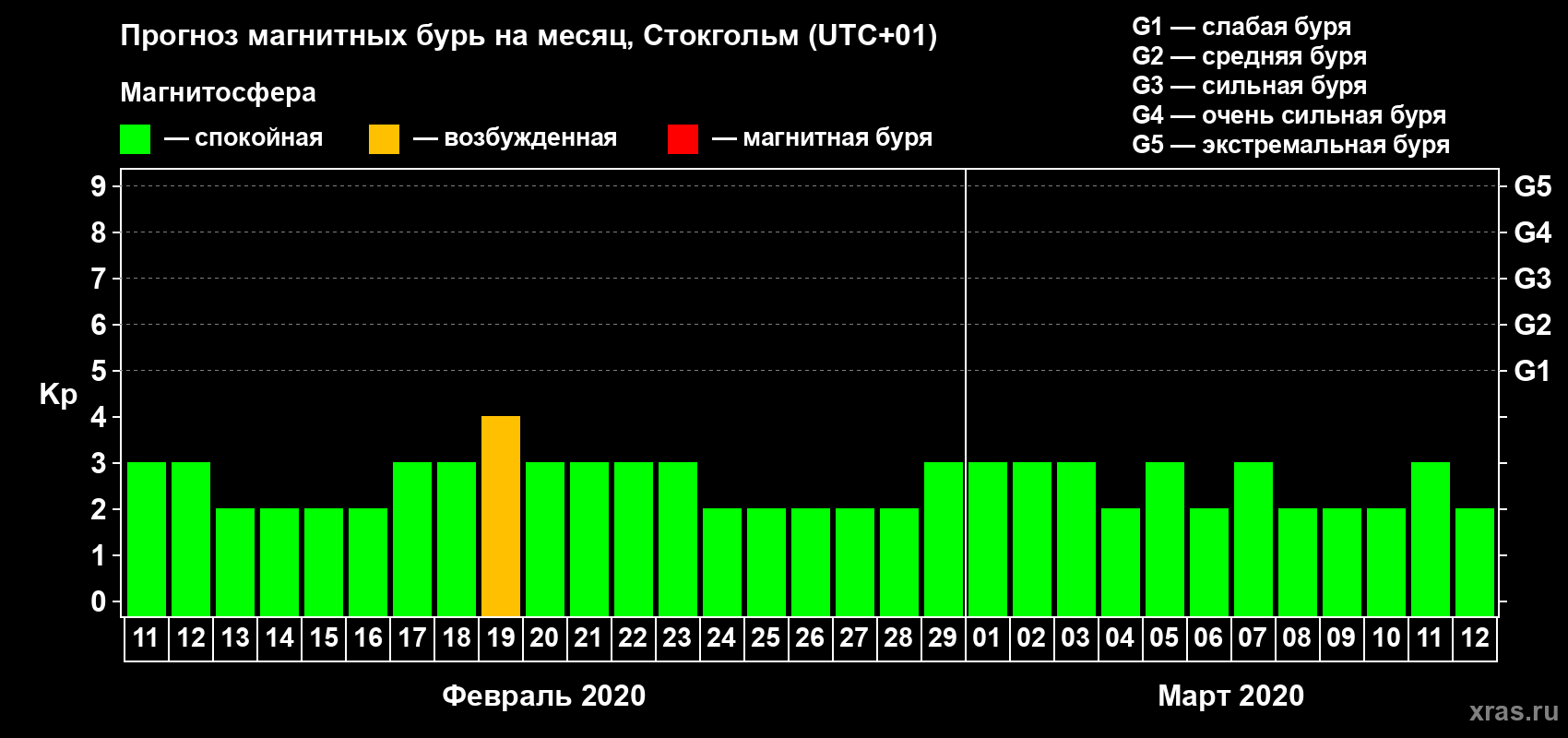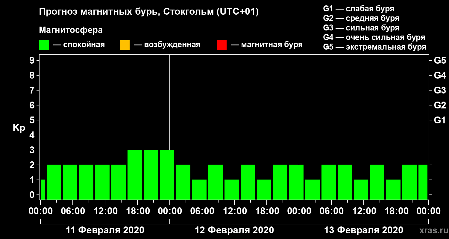 Прогноз магнитных бурь в Стокгольме — 11 февраля 2020 года