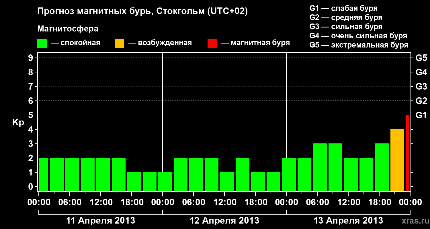 Прогноз магнитных бурь в Стокгольме — 11 апреля 2013 года