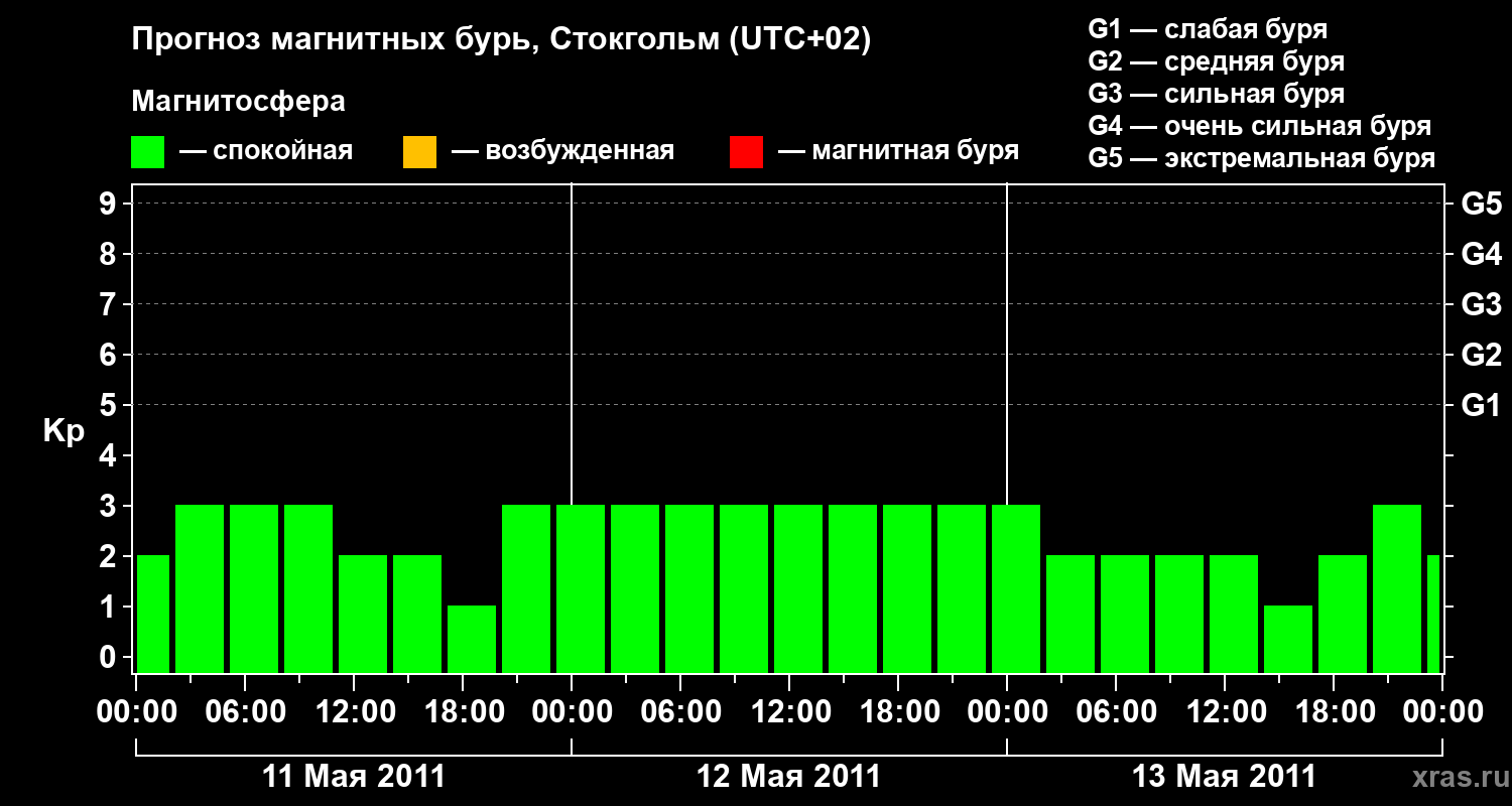 Прогноз магнитных бурь в Стокгольме — 11 мая 2011 года