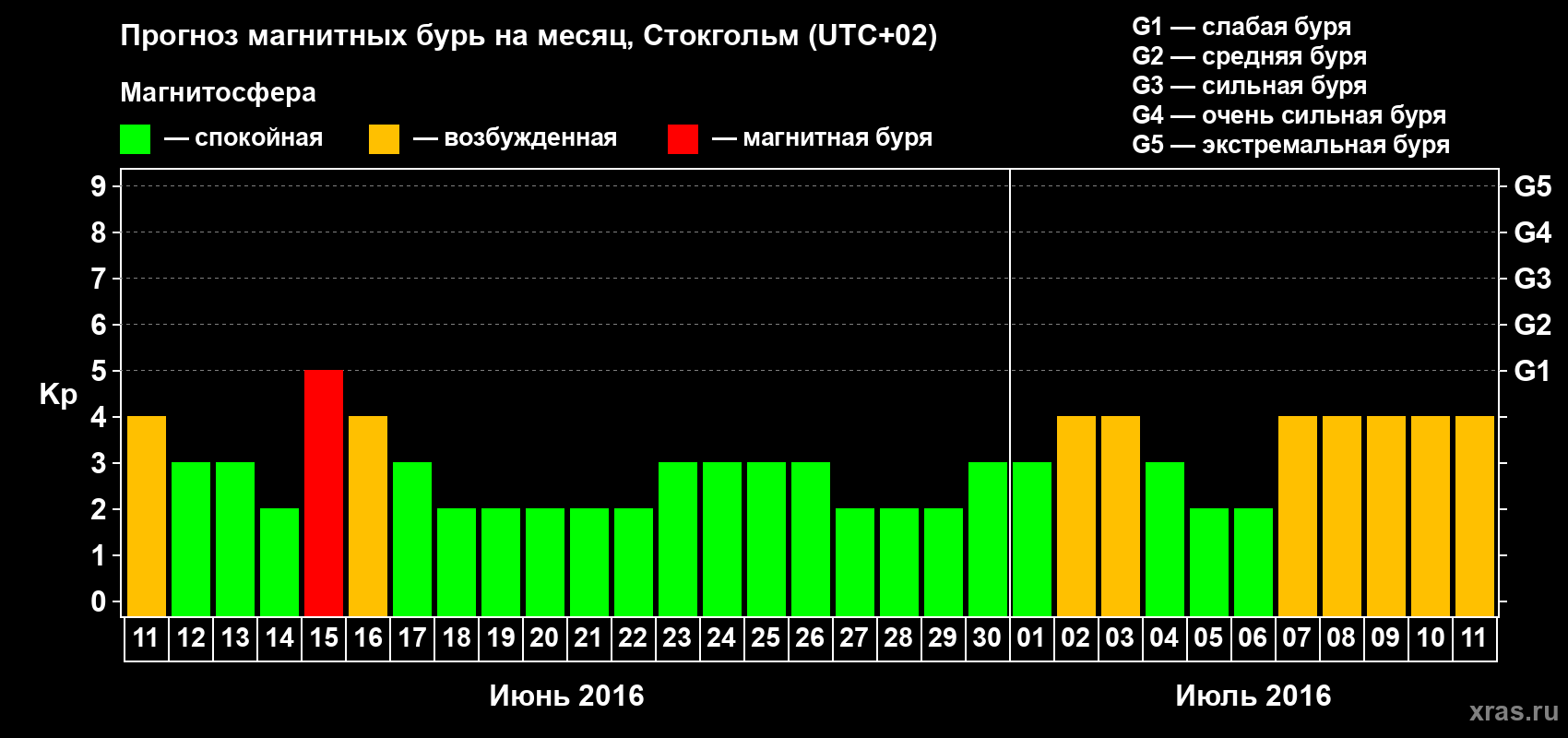 Прогноз магнитных бурь в Стокгольме — 11 июня 2016 года