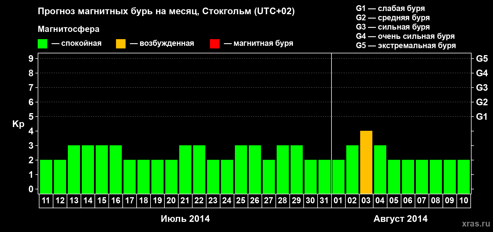 Прогноз магнитных бурь в Стокгольме — 11 июля 2014 года