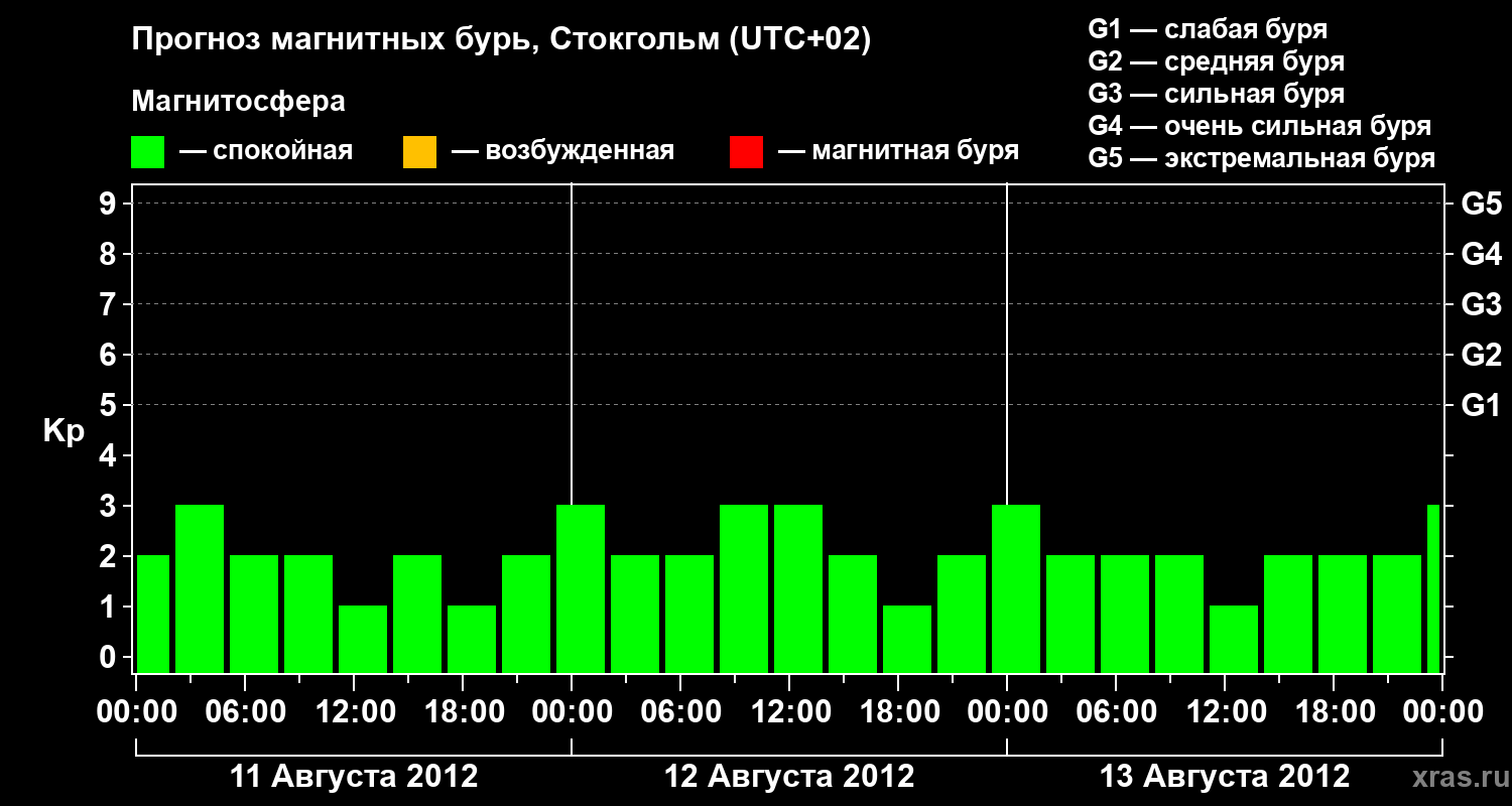 Прогноз магнитных бурь в Стокгольме — 11 августа 2012 года