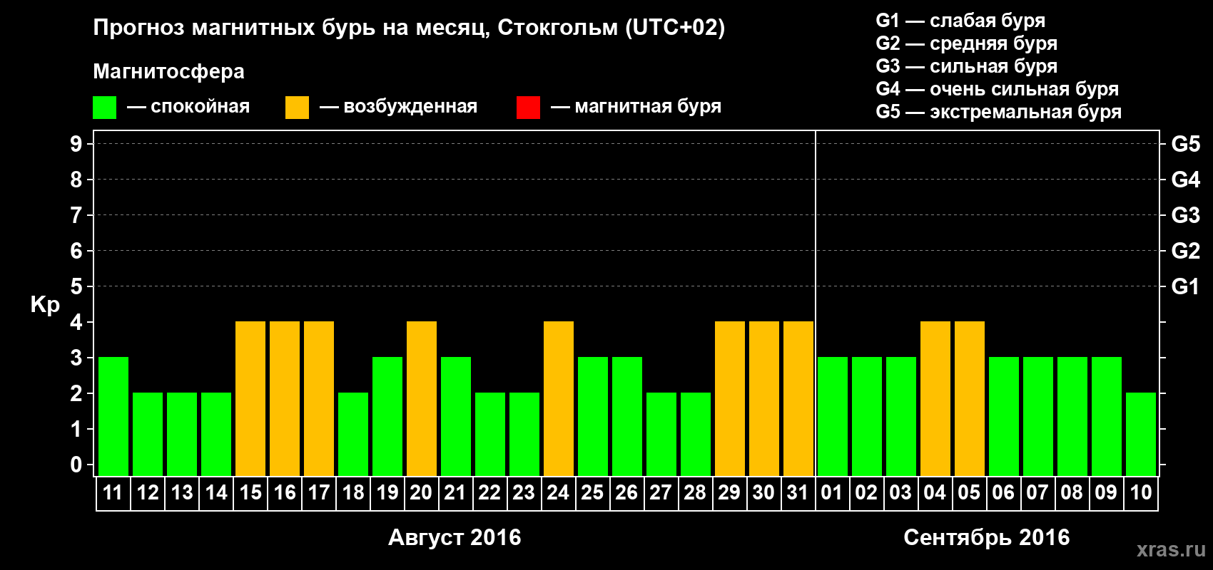 Прогноз магнитных бурь в Стокгольме — 11 августа 2016 года