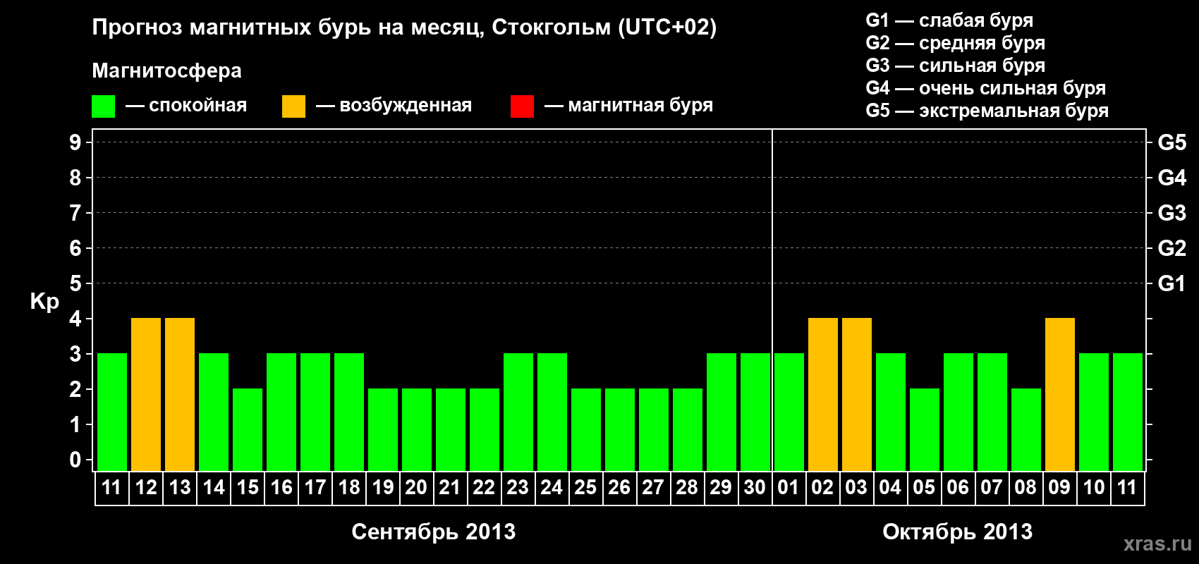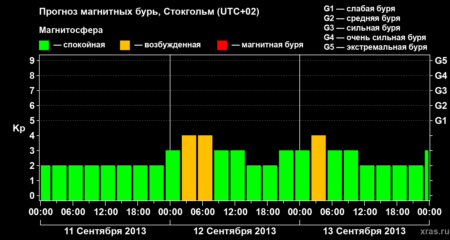 Прогноз магнитных бурь в Стокгольме — 11 сентября 2013 года