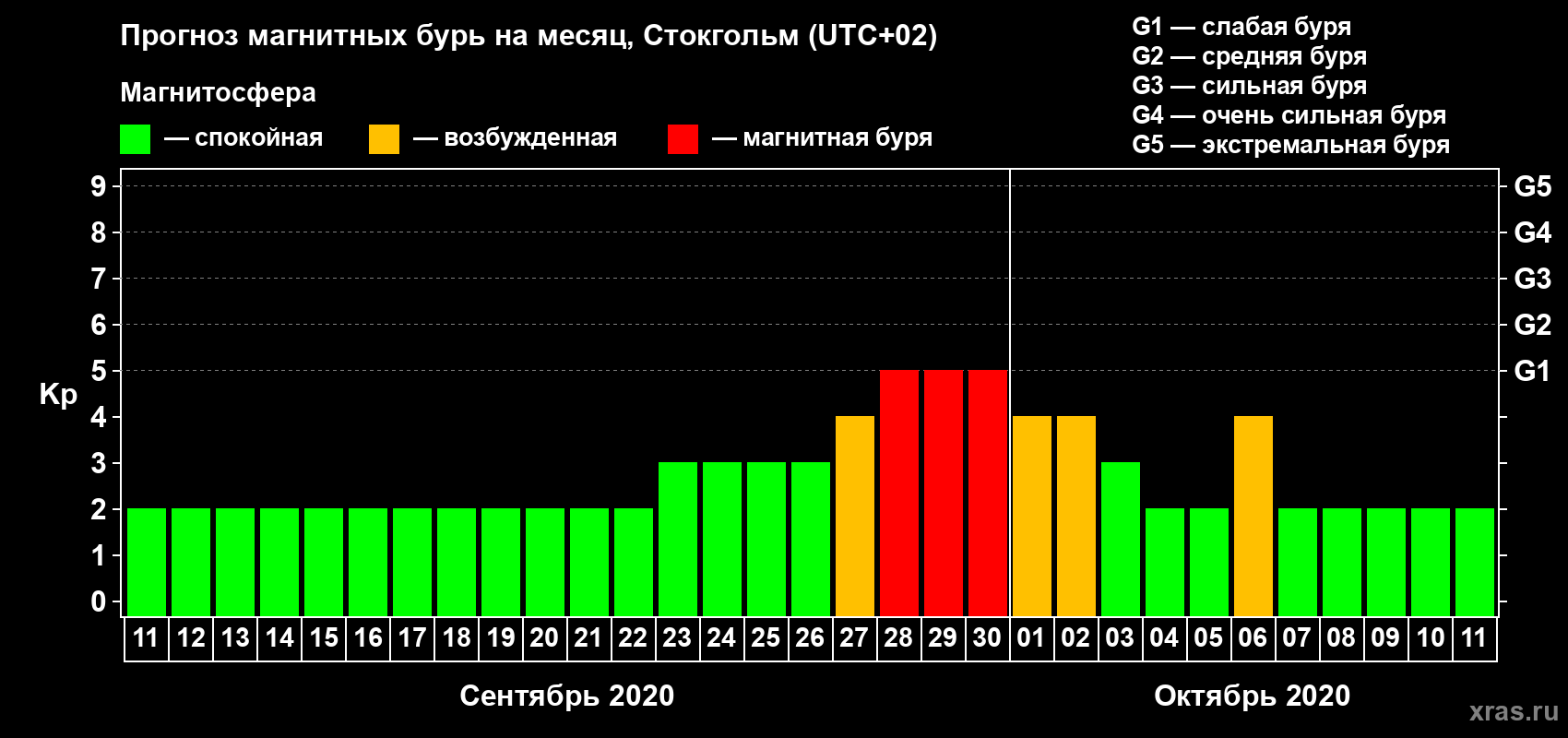 Прогноз магнитных бурь в Стокгольме — 11 сентября 2020 года