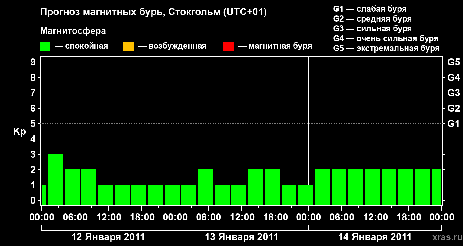 Прогноз магнитных бурь в Стокгольме — 12 января 2011 года