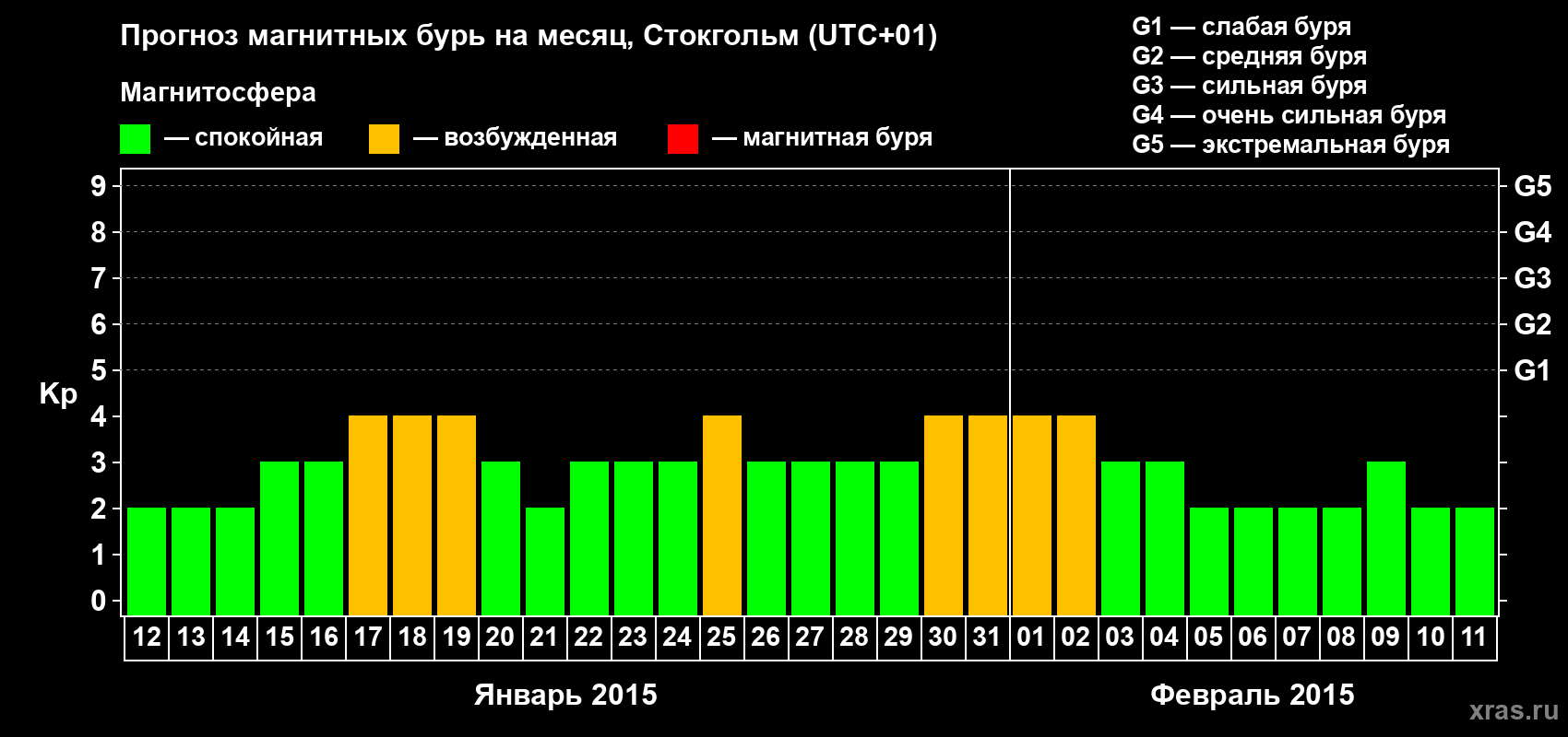 Прогноз магнитных бурь в Стокгольме — 12 января 2015 года