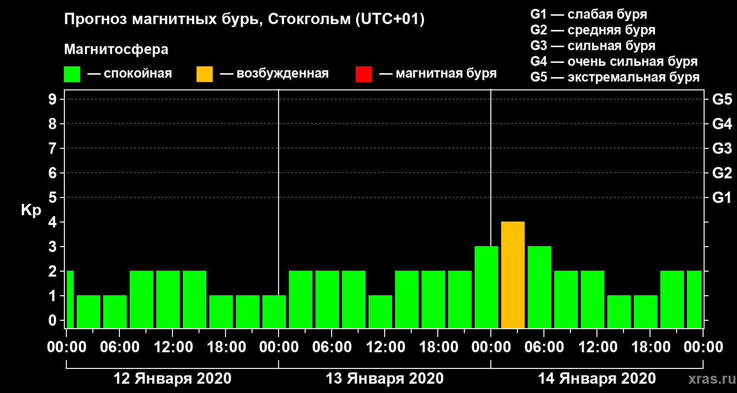 Прогноз магнитных бурь в Стокгольме — 12 января 2020 года