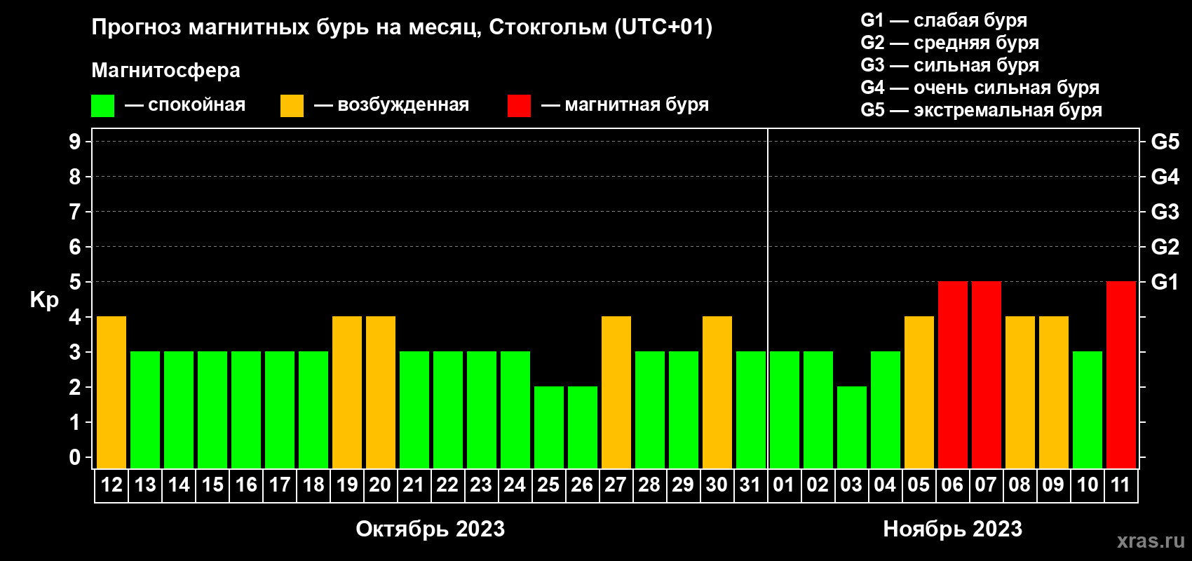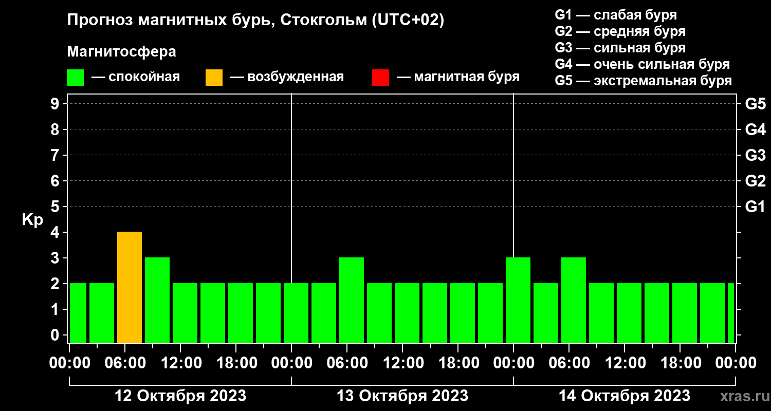Прогноз магнитных бурь в Стокгольме — 12 октября 2023 года