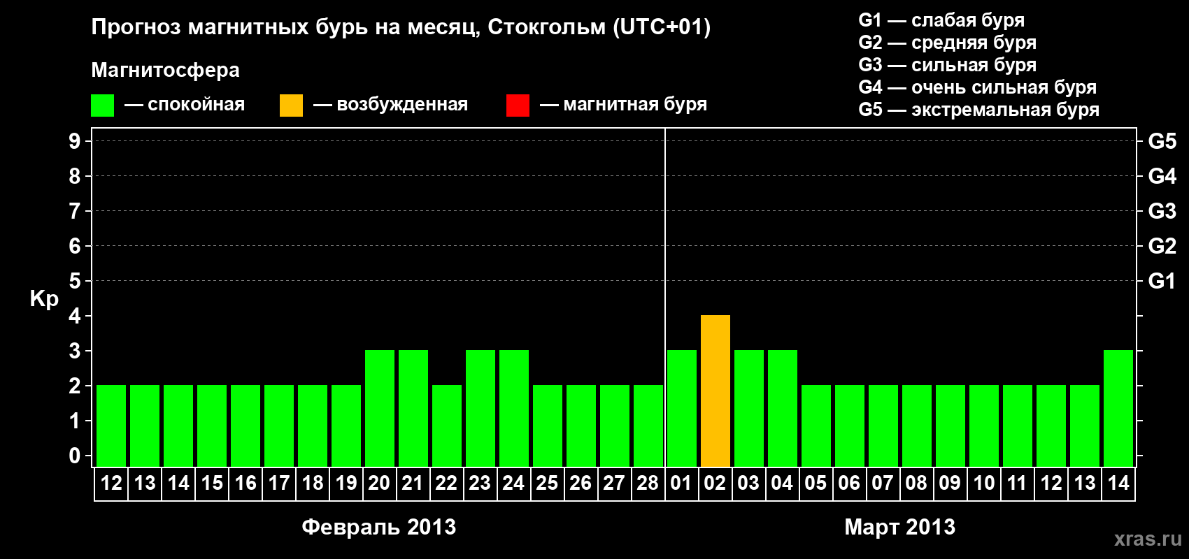 Прогноз магнитных бурь в Стокгольме — 12 февраля 2013 года