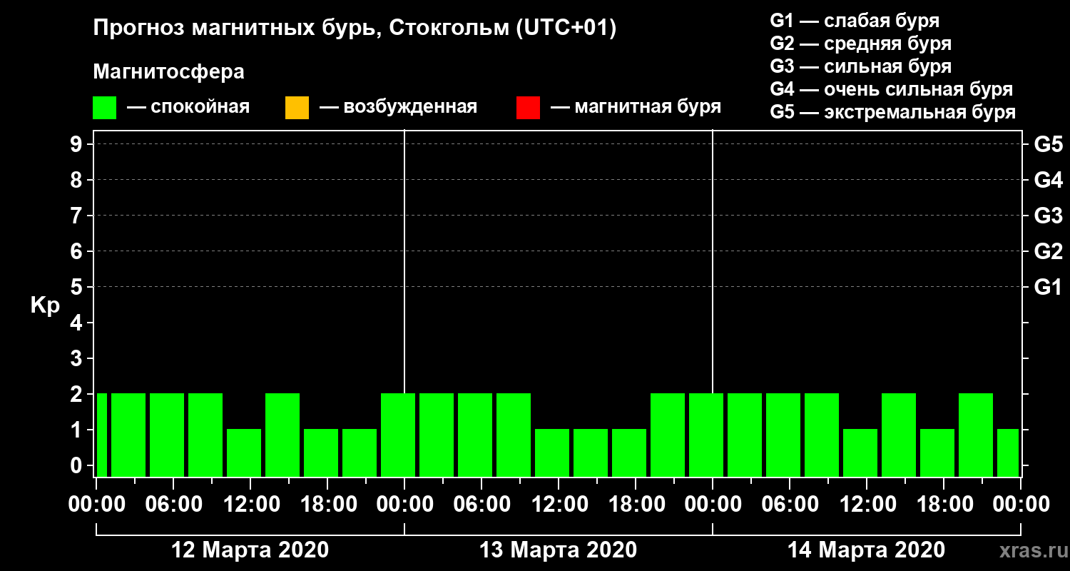 Прогноз магнитных бурь в Стокгольме — 12 марта 2020 года