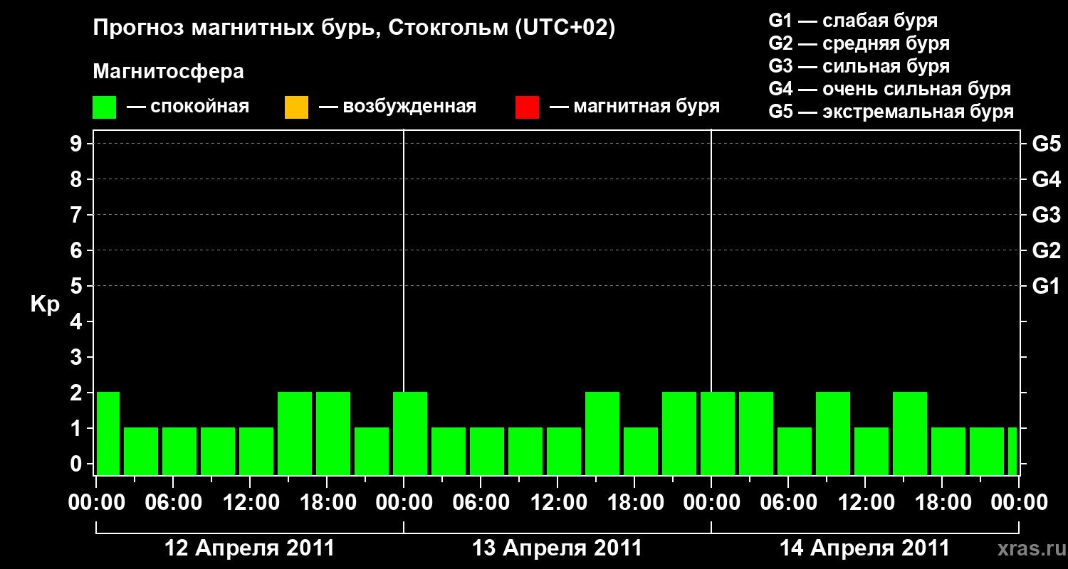 Прогноз магнитных бурь в Стокгольме — 12 апреля 2011 года