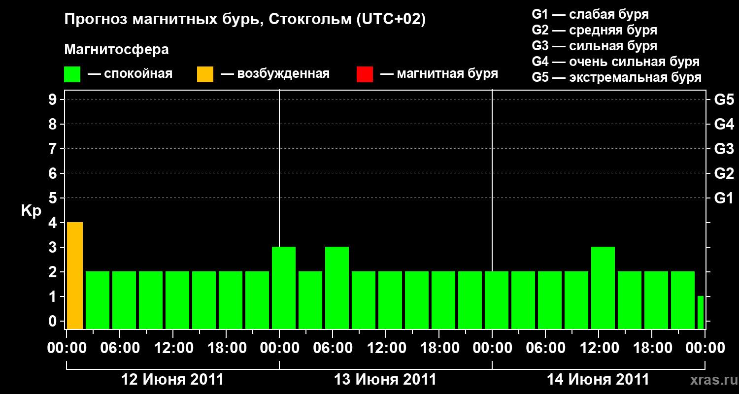 Прогноз магнитных бурь в Стокгольме — 12 июня 2011 года