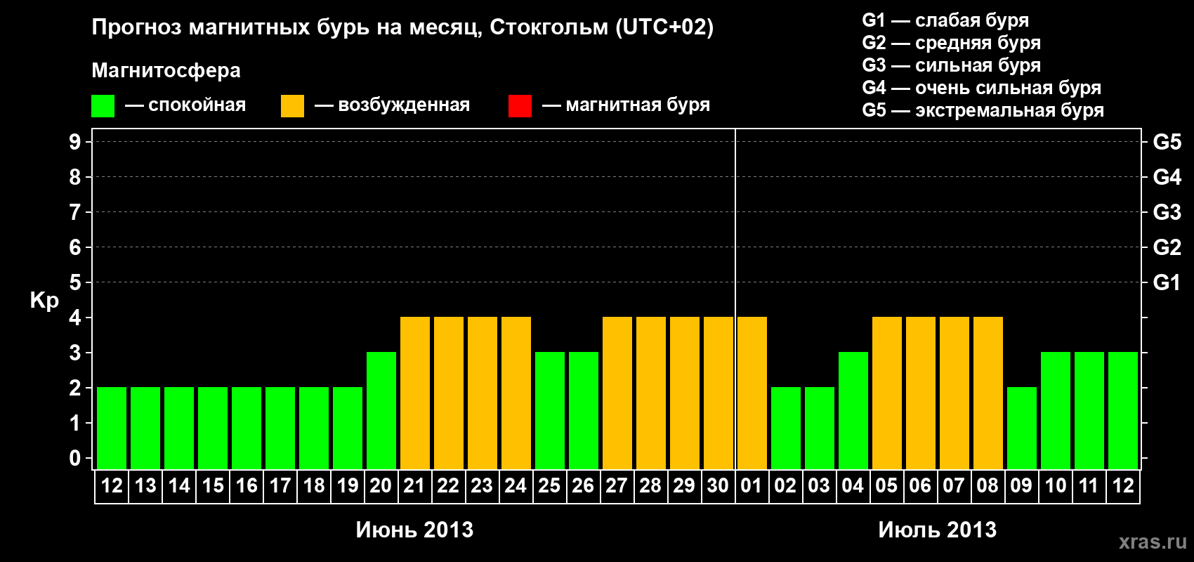 Прогноз магнитных бурь в Стокгольме — 12 июня 2013 года