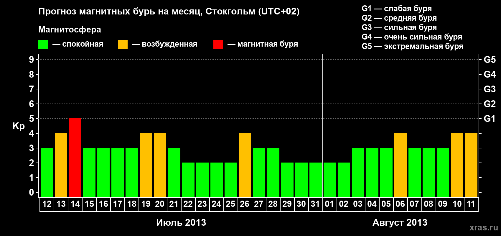 Прогноз магнитных бурь в Стокгольме — 12 июля 2013 года