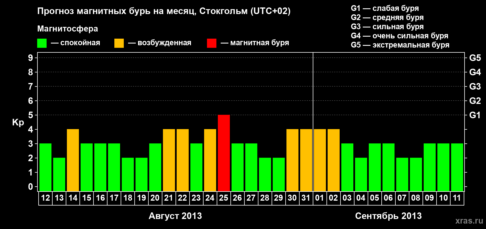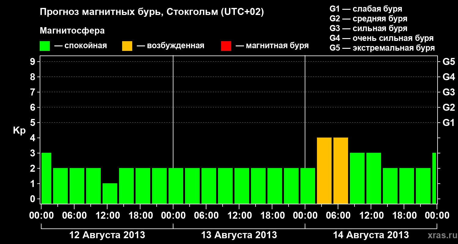 Прогноз магнитных бурь в Стокгольме — 12 августа 2013 года