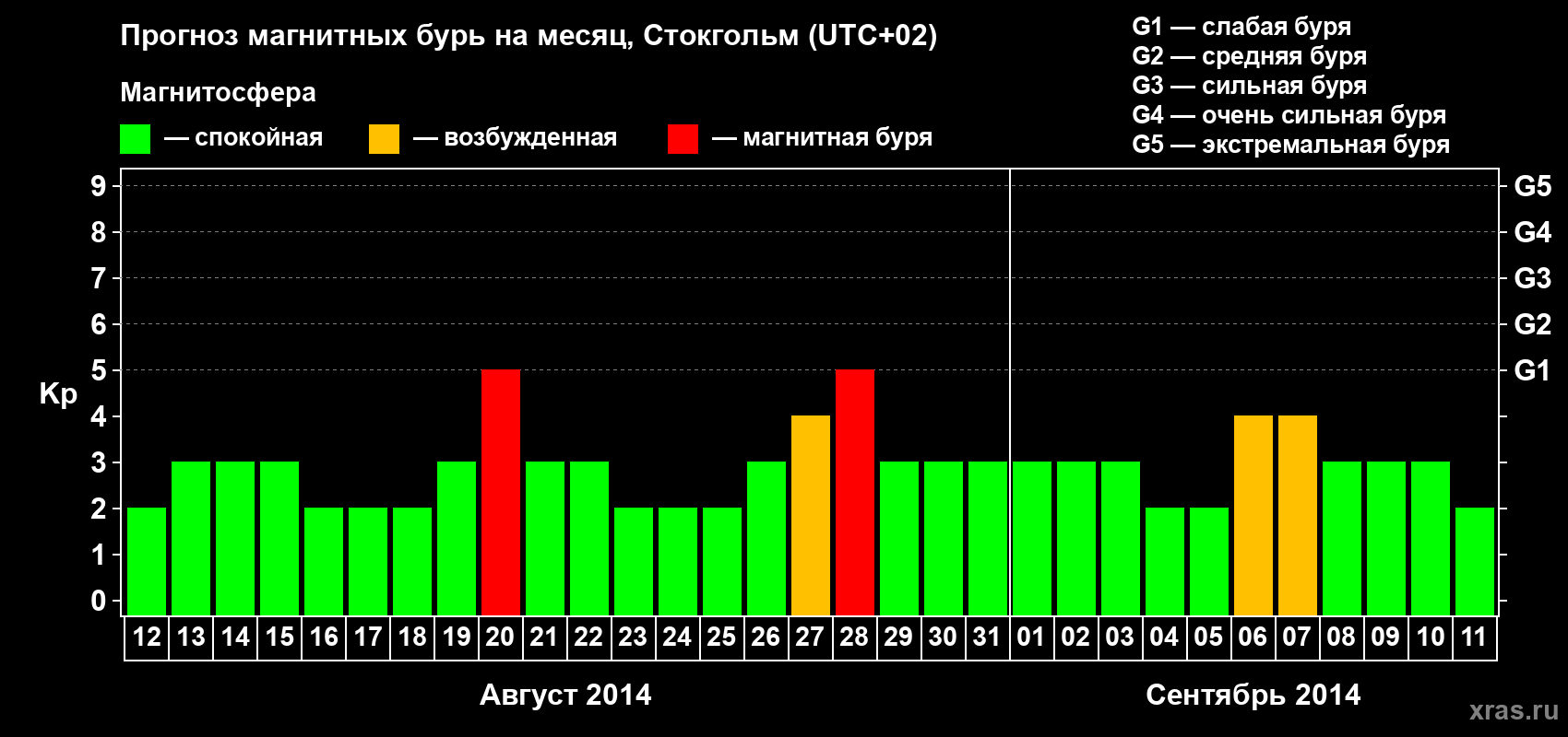 Прогноз магнитных бурь в Стокгольме — 12 августа 2014 года