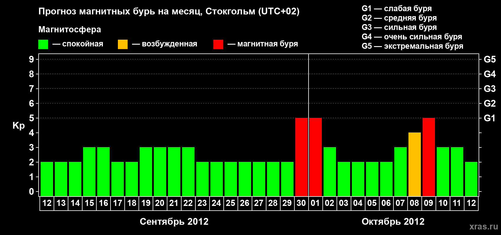 Прогноз магнитных бурь в Стокгольме — 12 сентября 2012 года