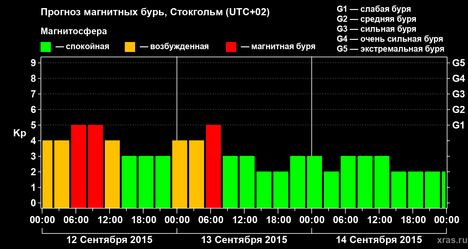 Прогноз магнитных бурь в Стокгольме — 12 сентября 2015 года