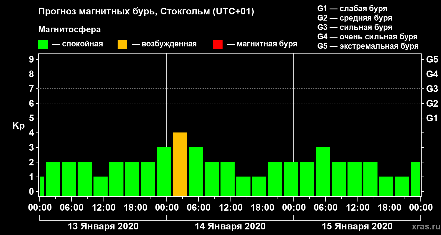 Прогноз магнитных бурь в Стокгольме — 13 января 2020 года