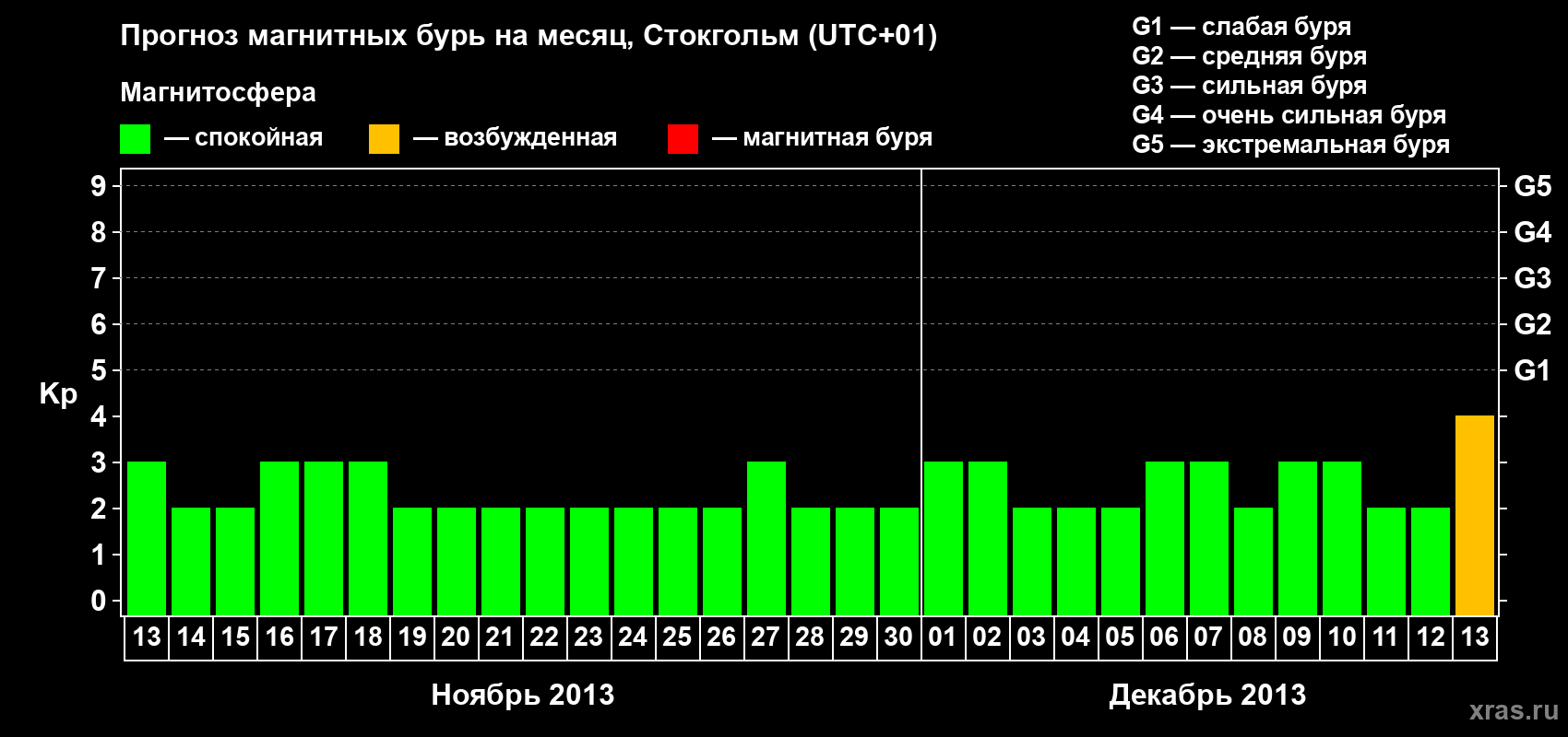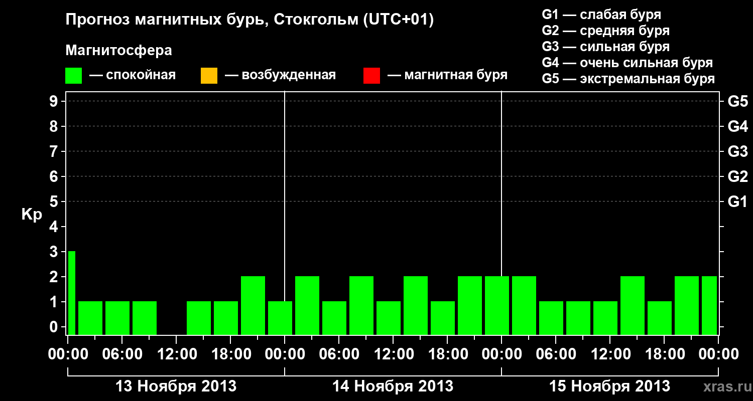 Прогноз магнитных бурь в Стокгольме — 13 ноября 2013 года