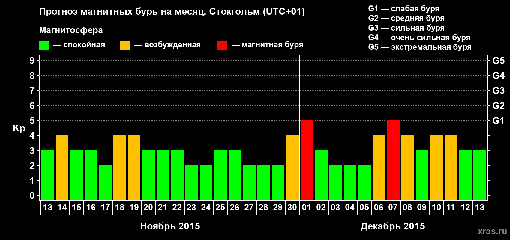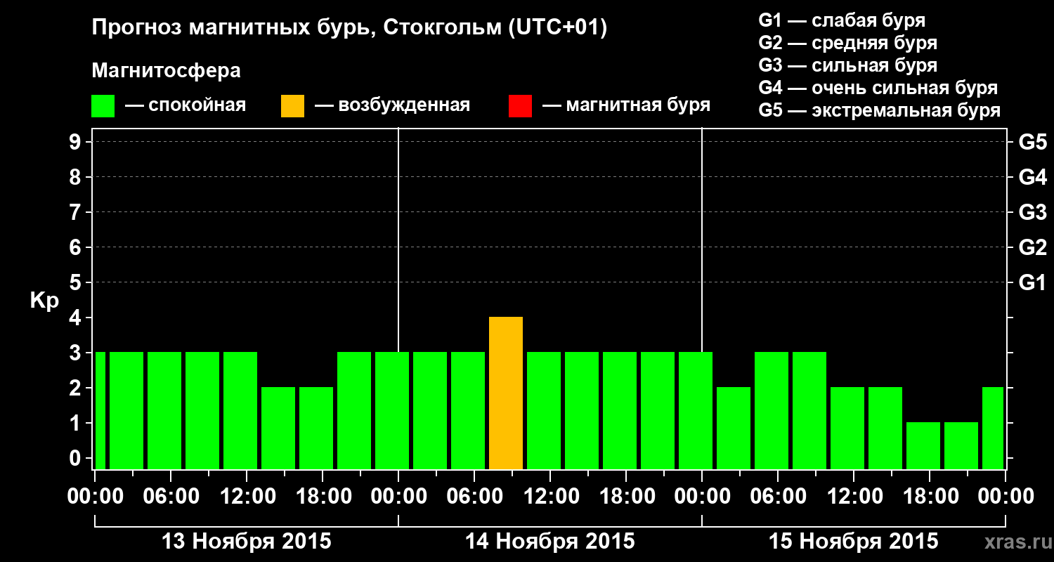 Прогноз магнитных бурь в Стокгольме — 13 ноября 2015 года