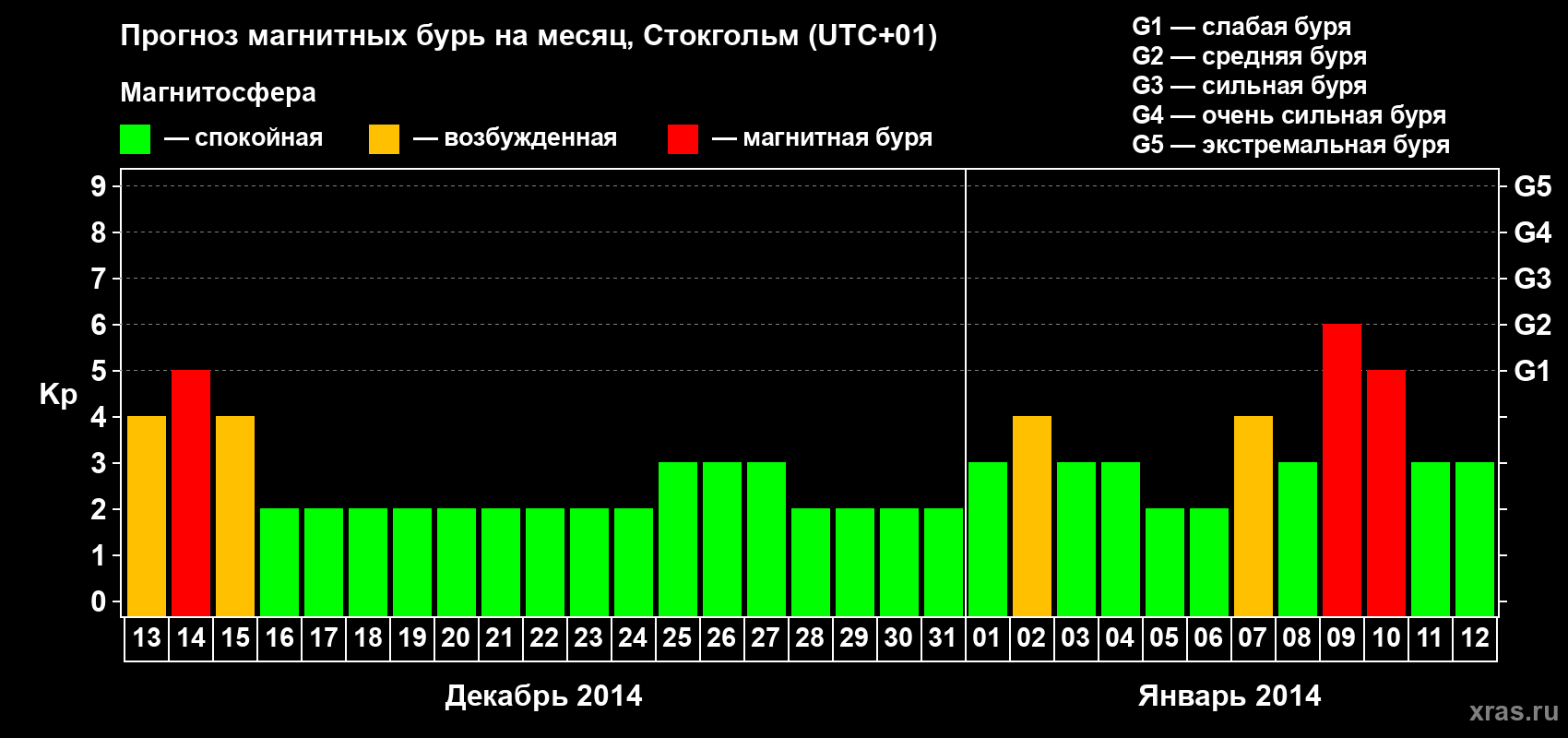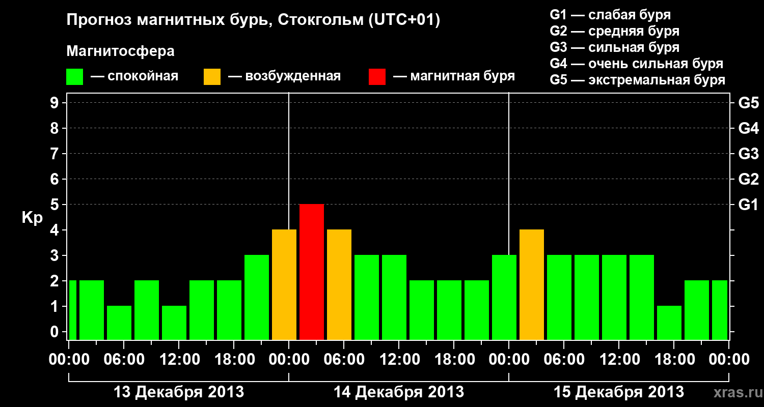 Прогноз магнитных бурь в Стокгольме — 13 декабря 2013 года