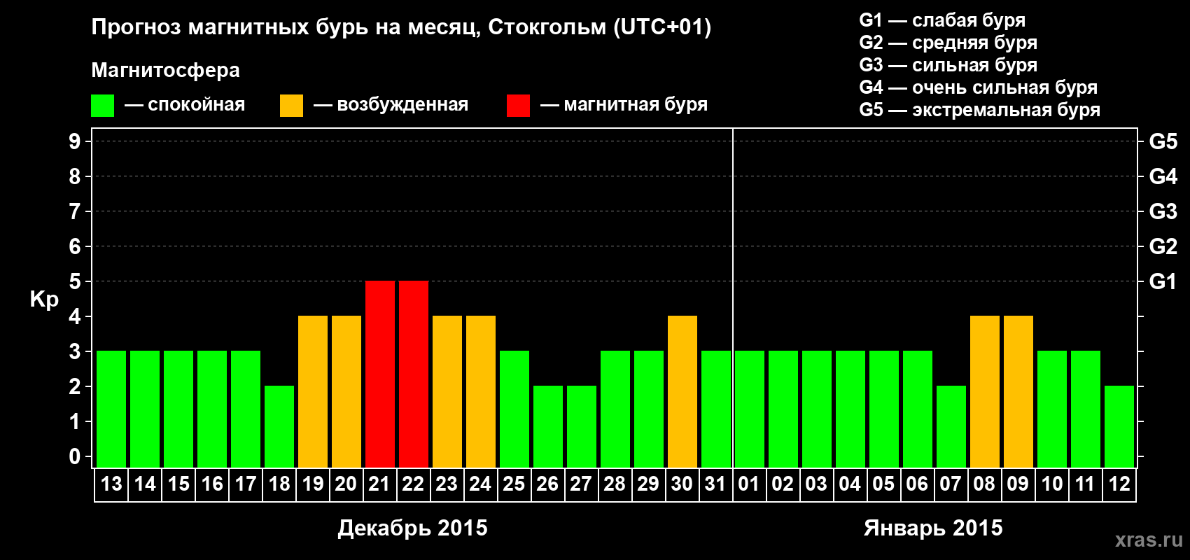 Прогноз магнитных бурь в Стокгольме — 13 декабря 2014 года