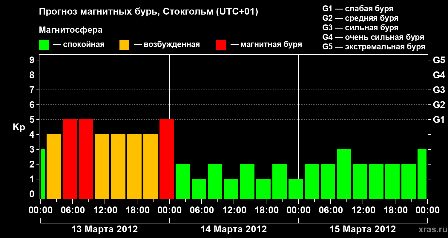 Прогноз магнитных бурь в Стокгольме — 13 марта 2012 года