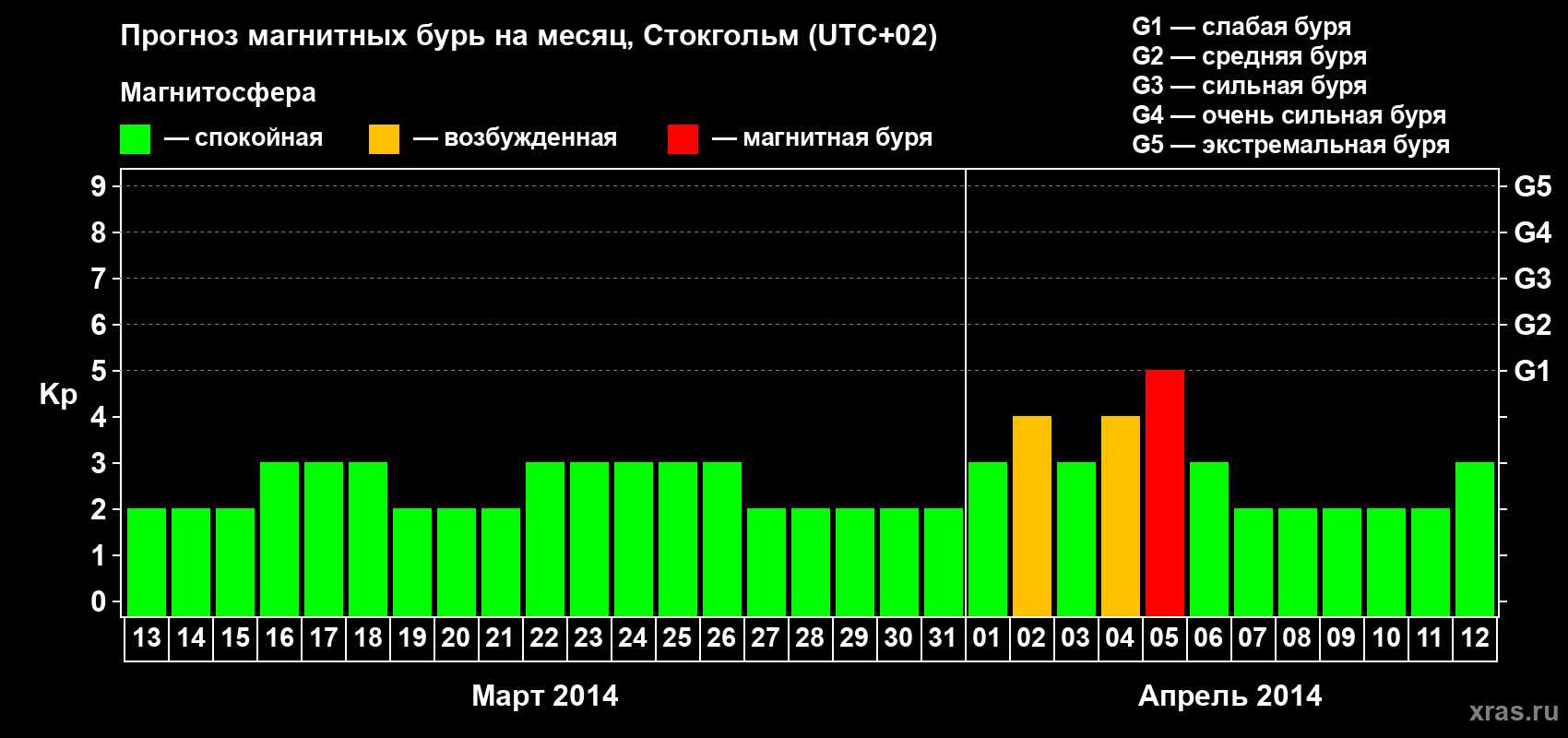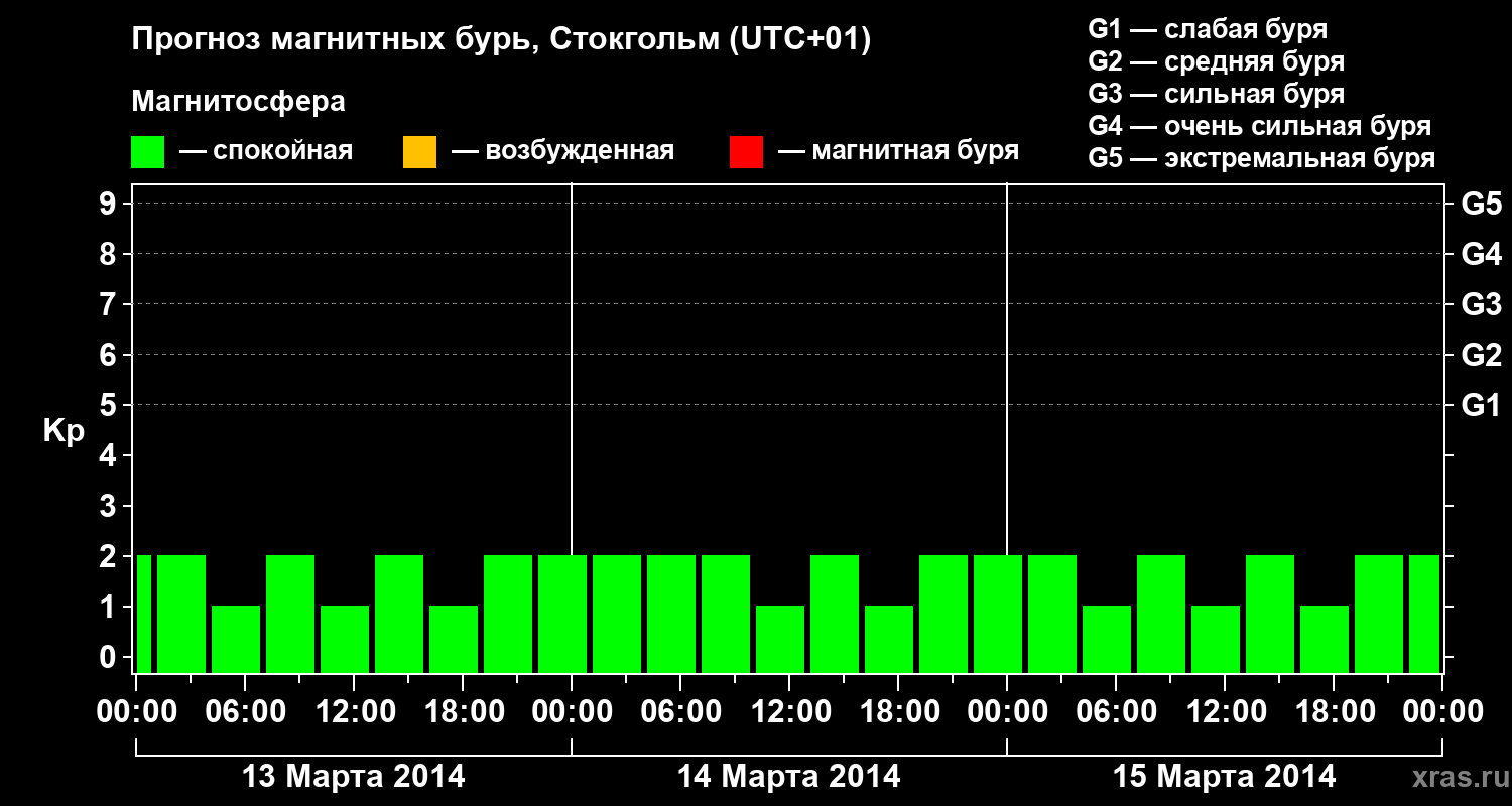 Прогноз магнитных бурь в Стокгольме — 13 марта 2014 года
